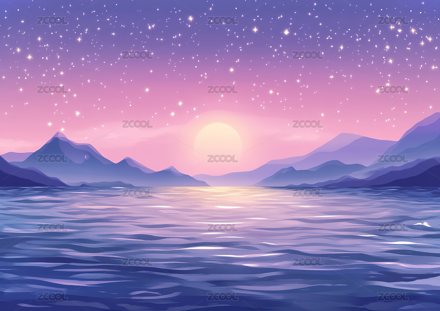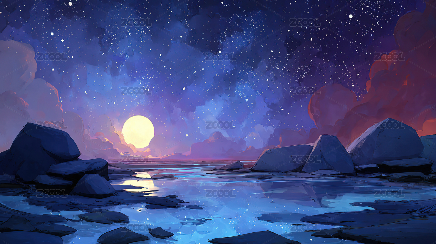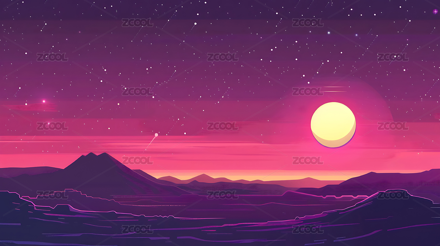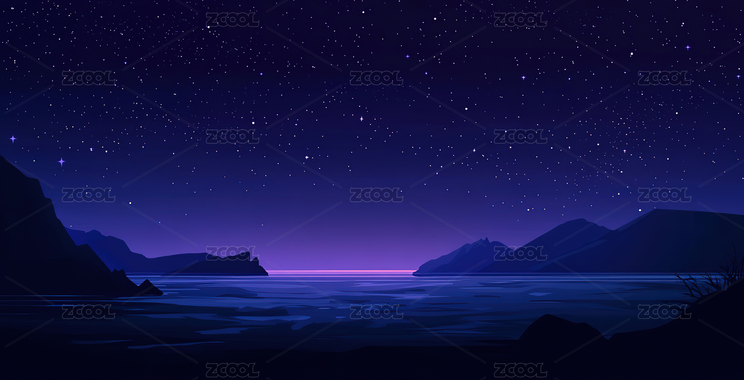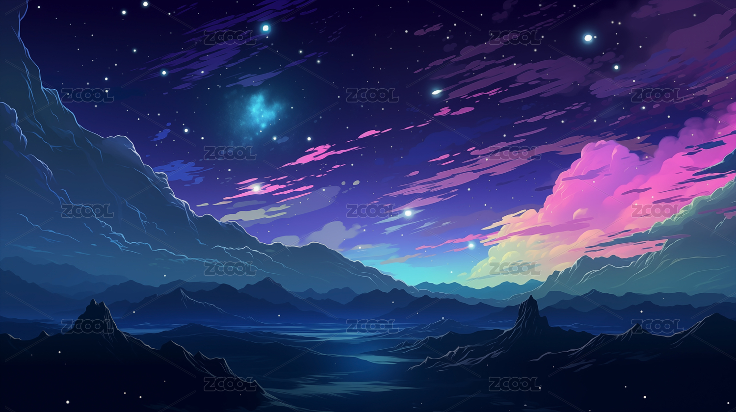 手绘唯美的抽象艺术感夜晚天空风景插画