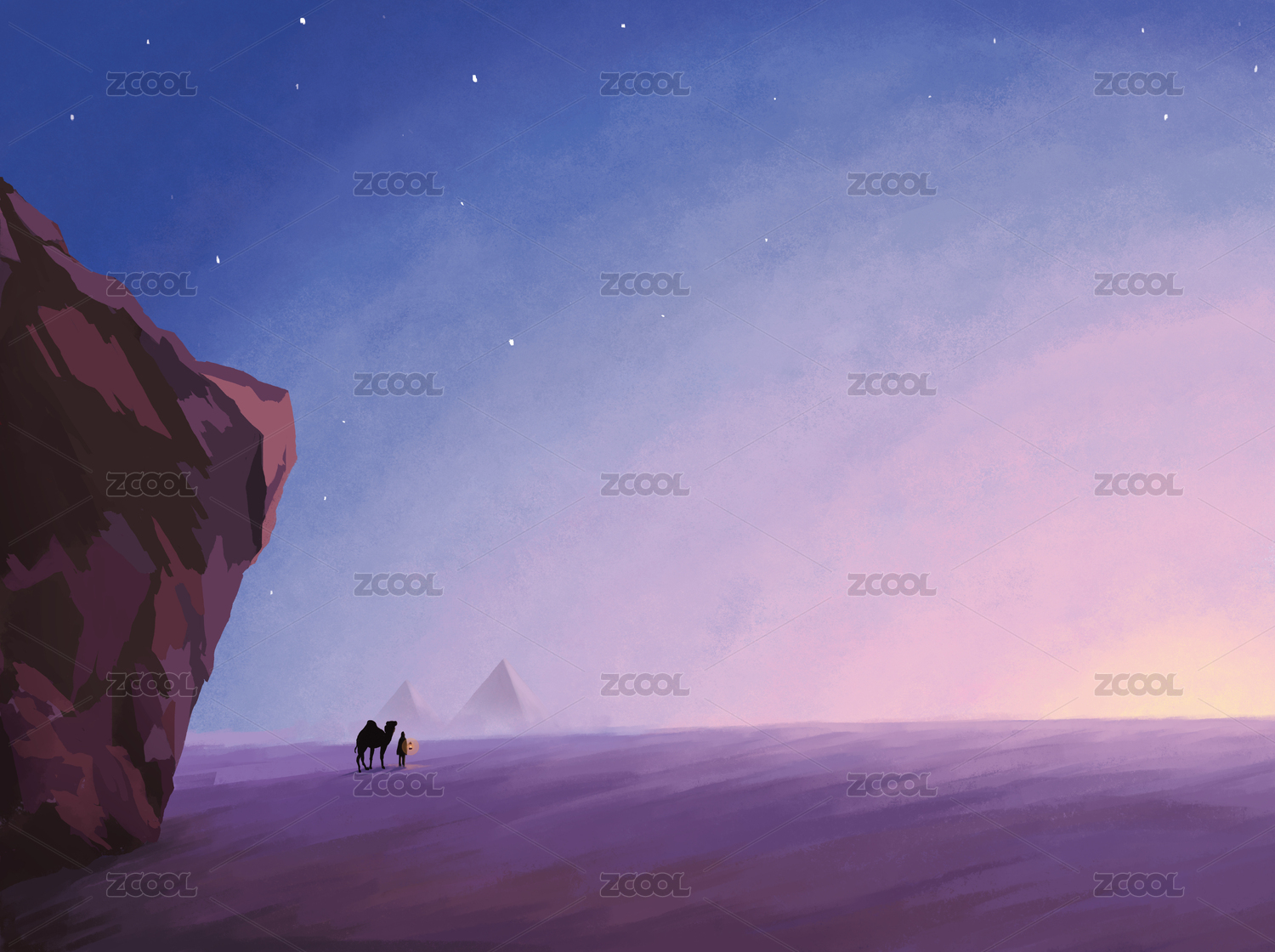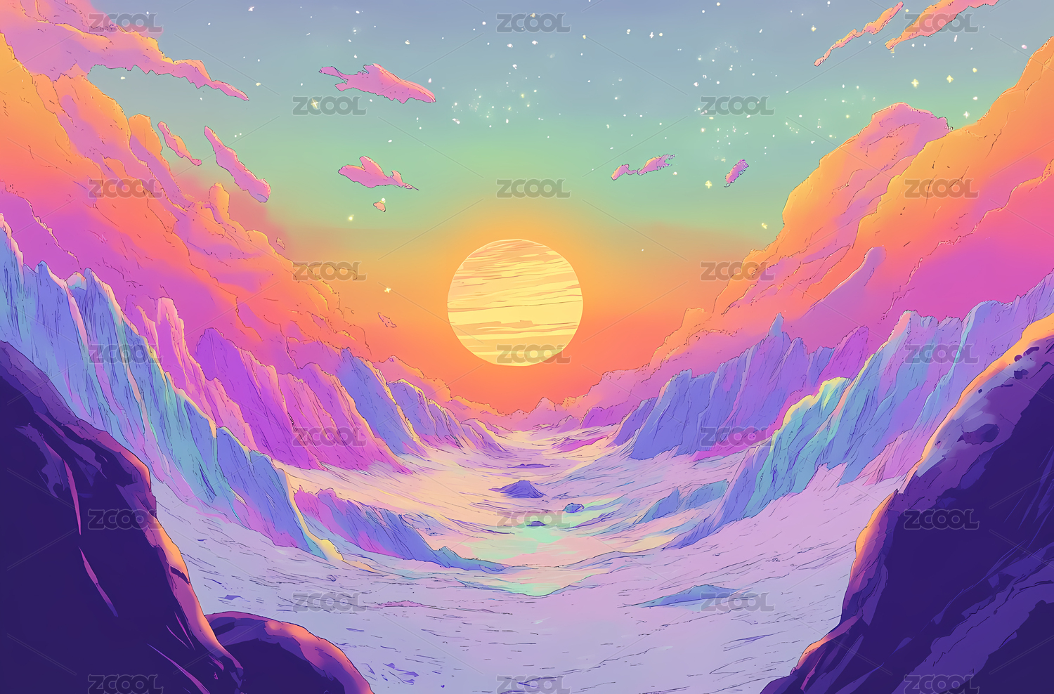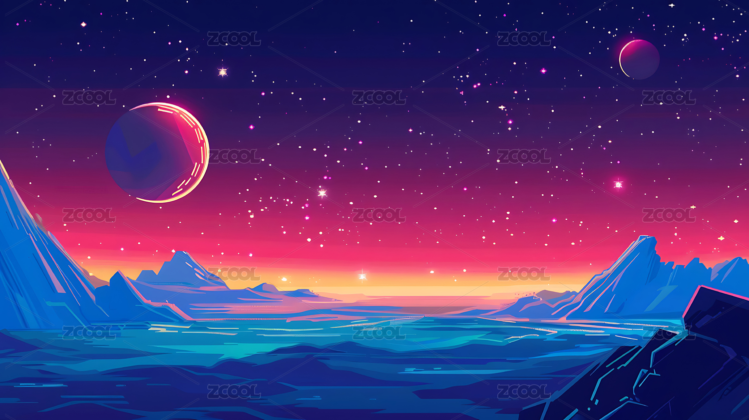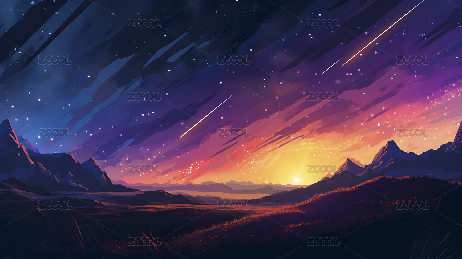 手绘唯美的抽象艺术感夜晚天空风景插画