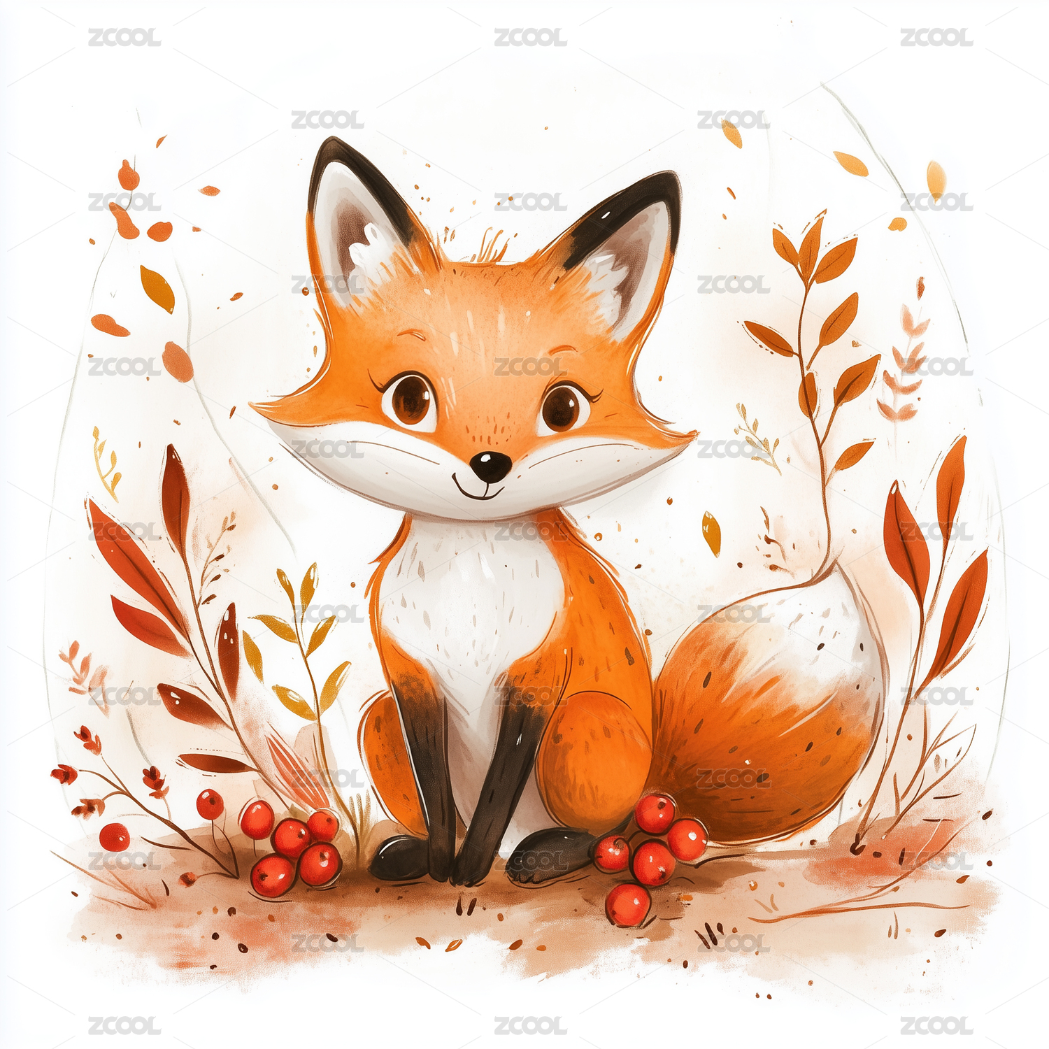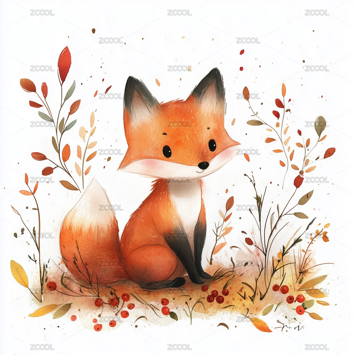 水彩风狐狸插画