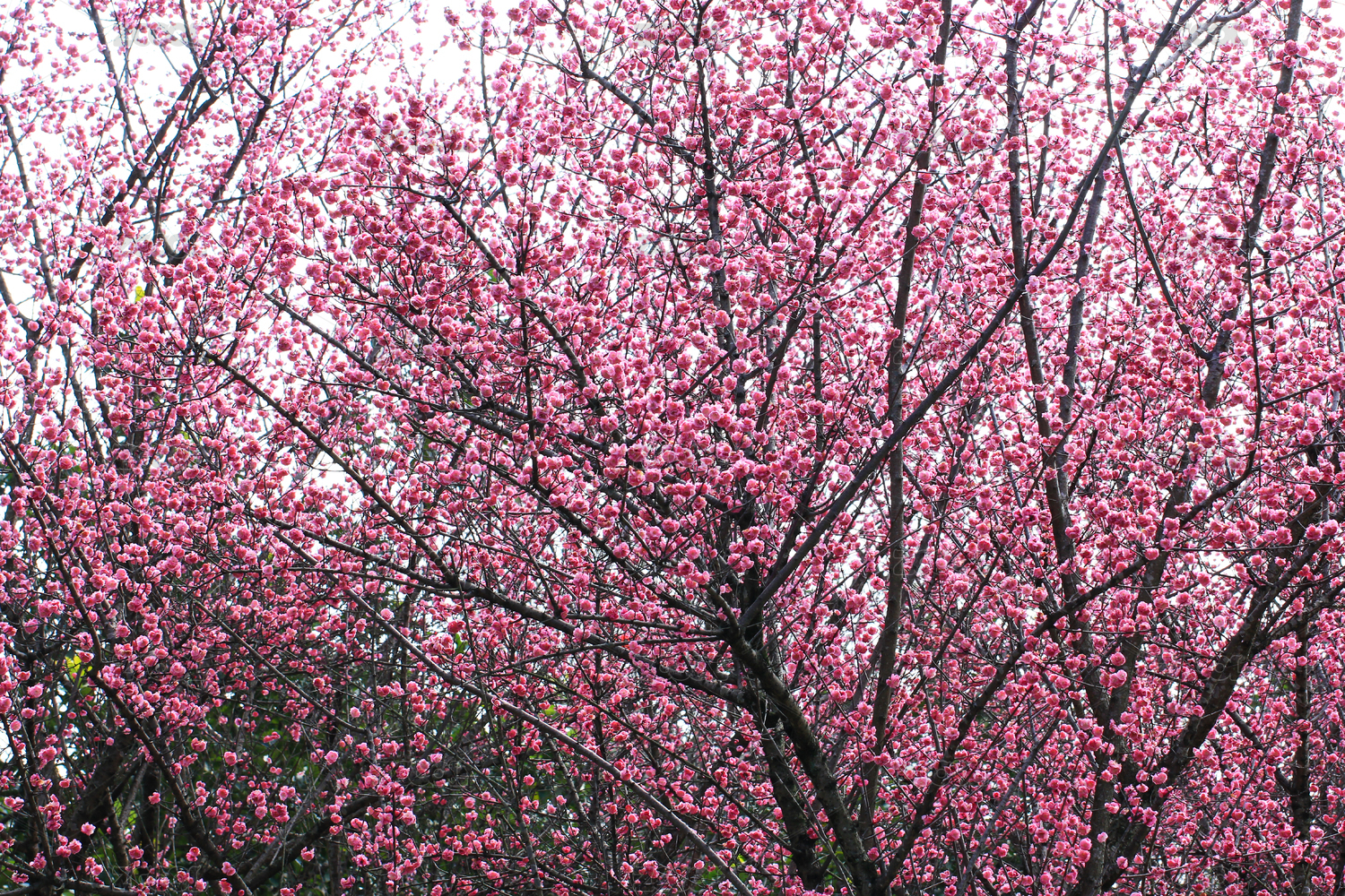 春暖花开,一片绽放的粉色杏梅的花海