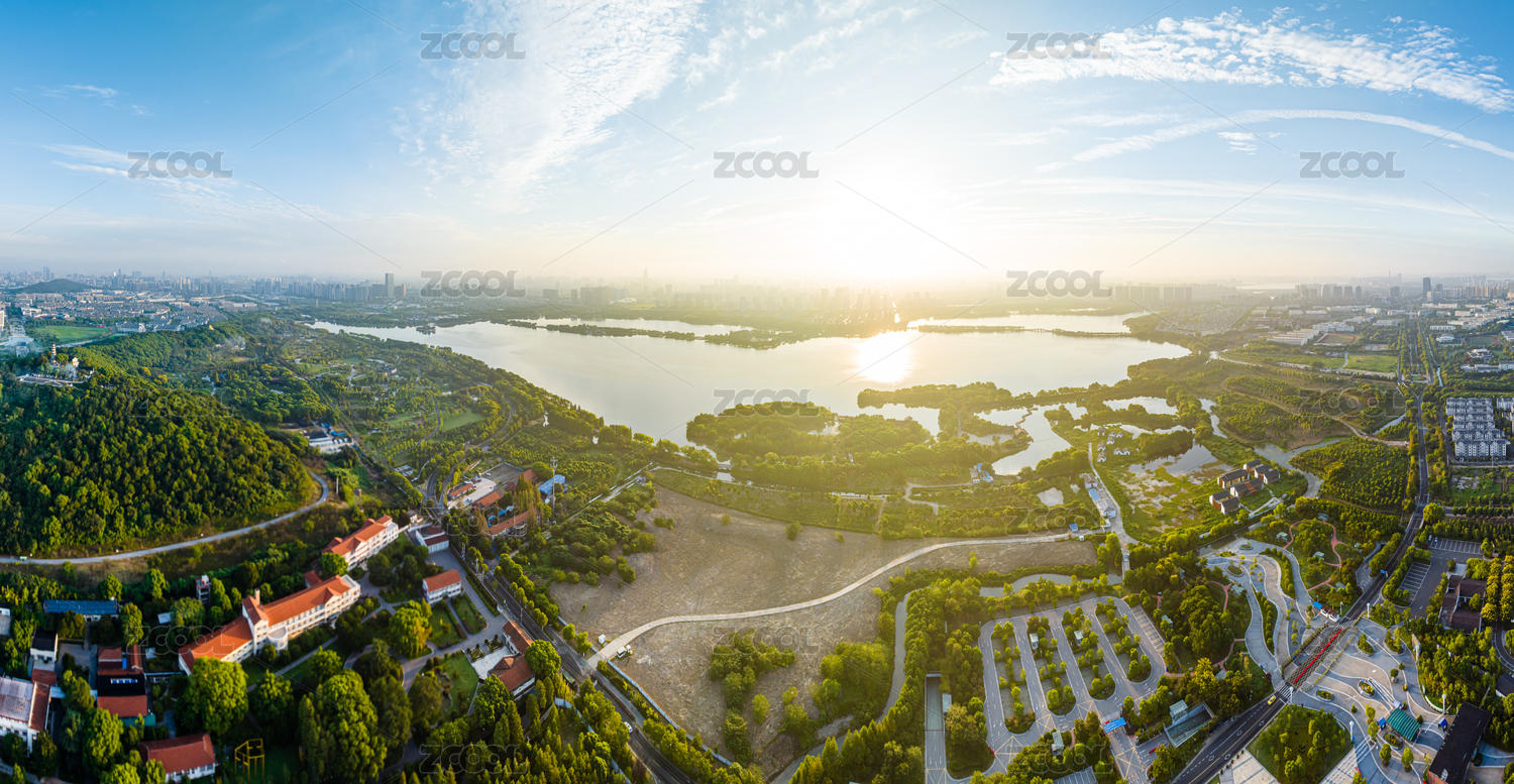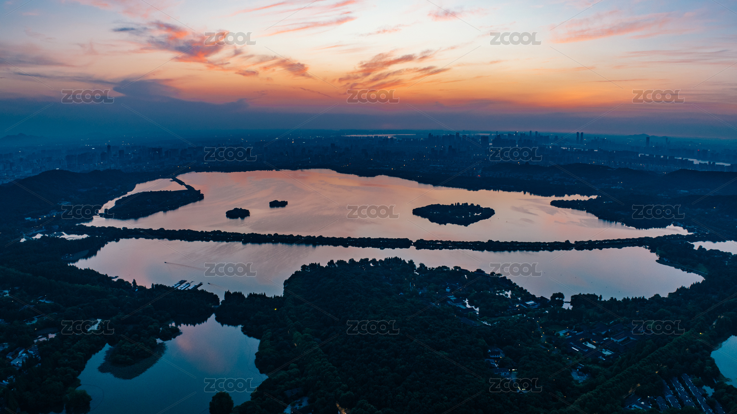杭州,西湖,朝霞,全景,航拍,航拍视角,高视角,俯瞰,鸟瞰,苏堤