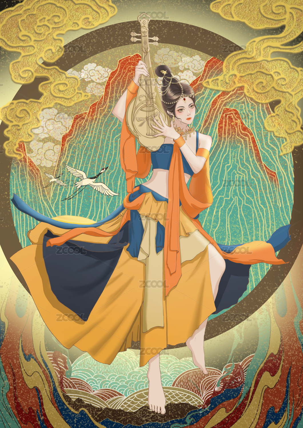 敦煌飞天插画中国乐器