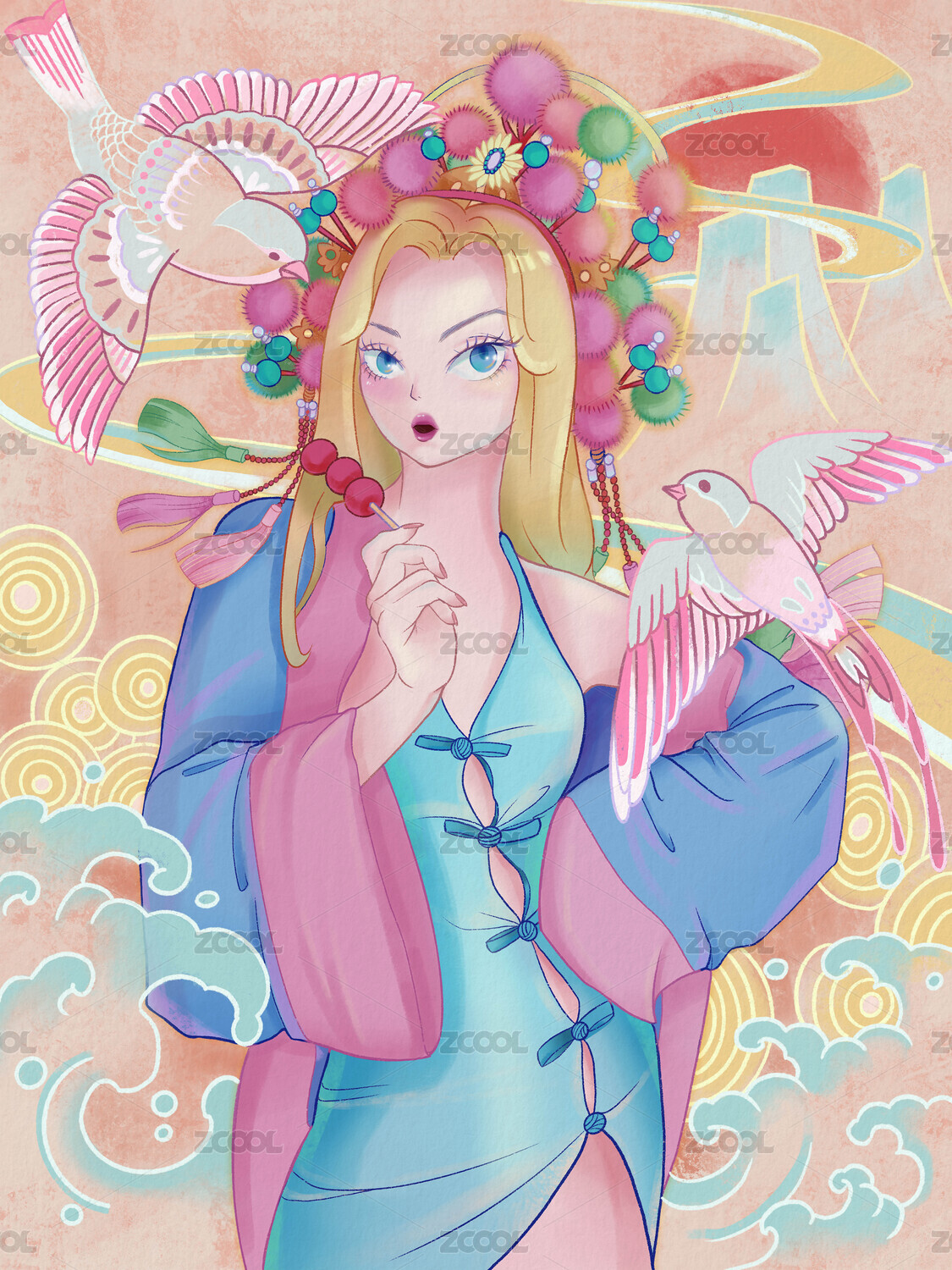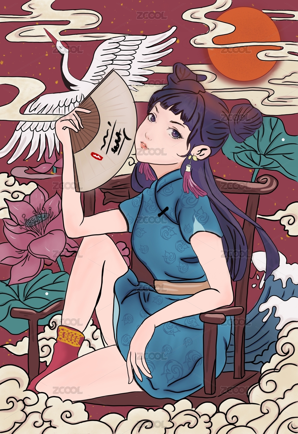 国潮旗袍美女插画