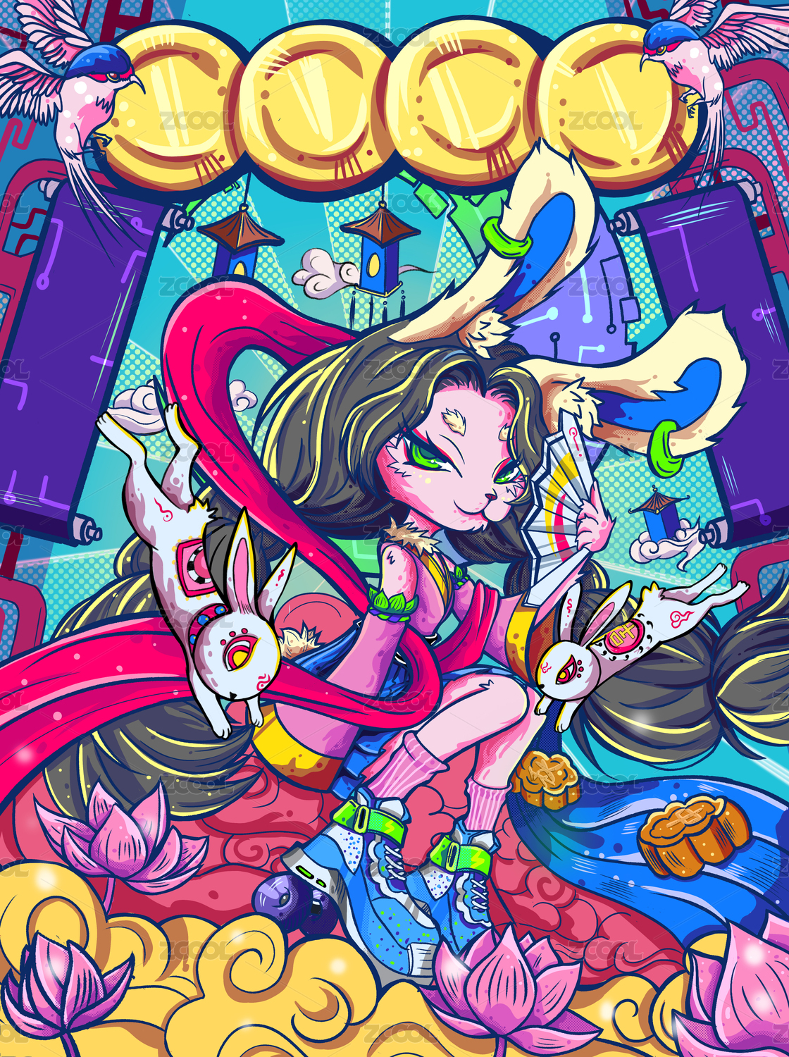 赛博国潮风中秋节