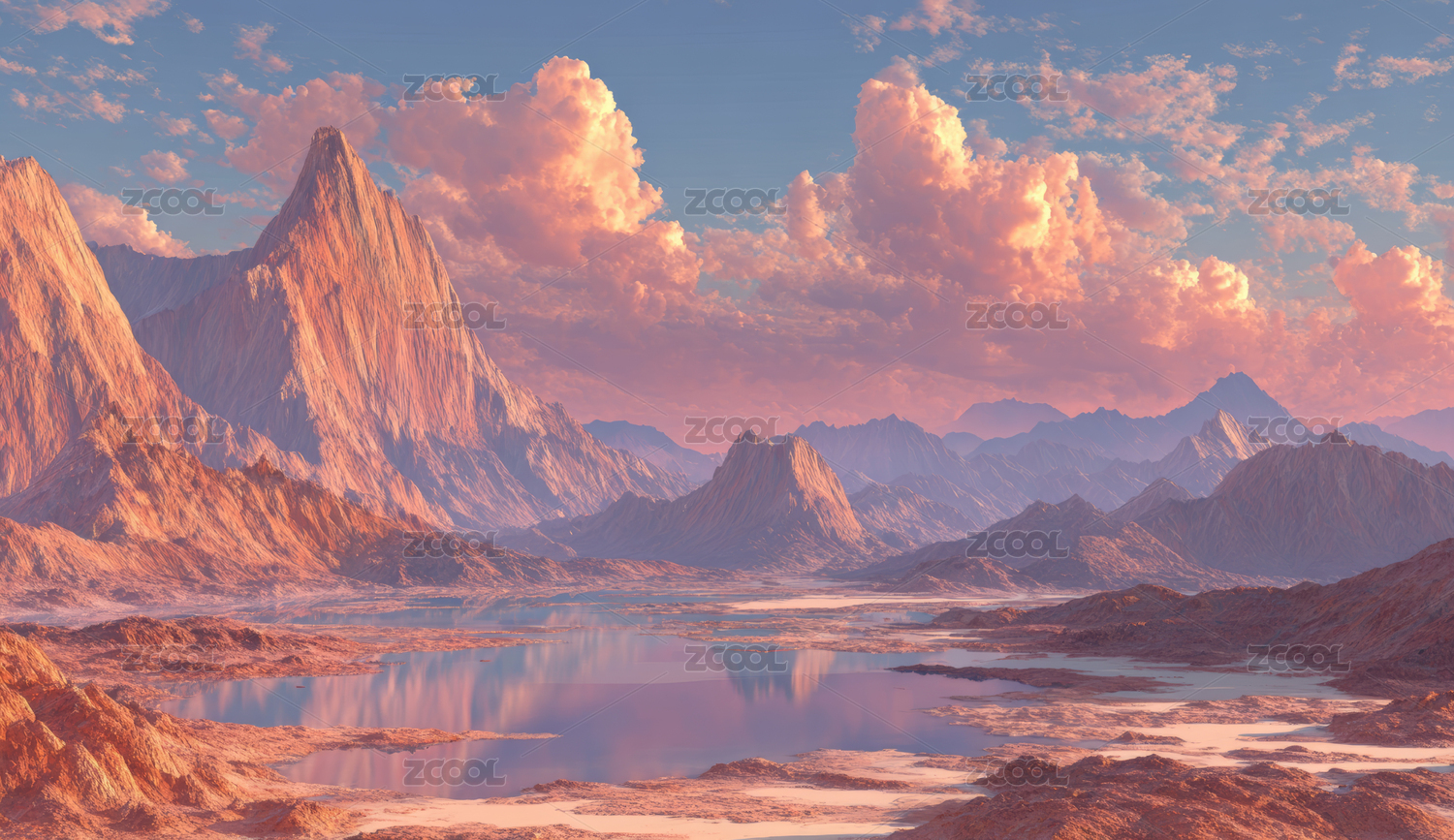 奇幻,山脉,风景,云雾,光线,地形,色彩,天空,树木,道路