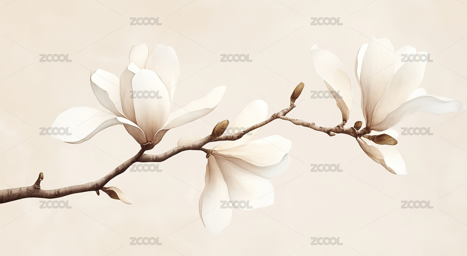 白木兰枝优雅花卉装饰图