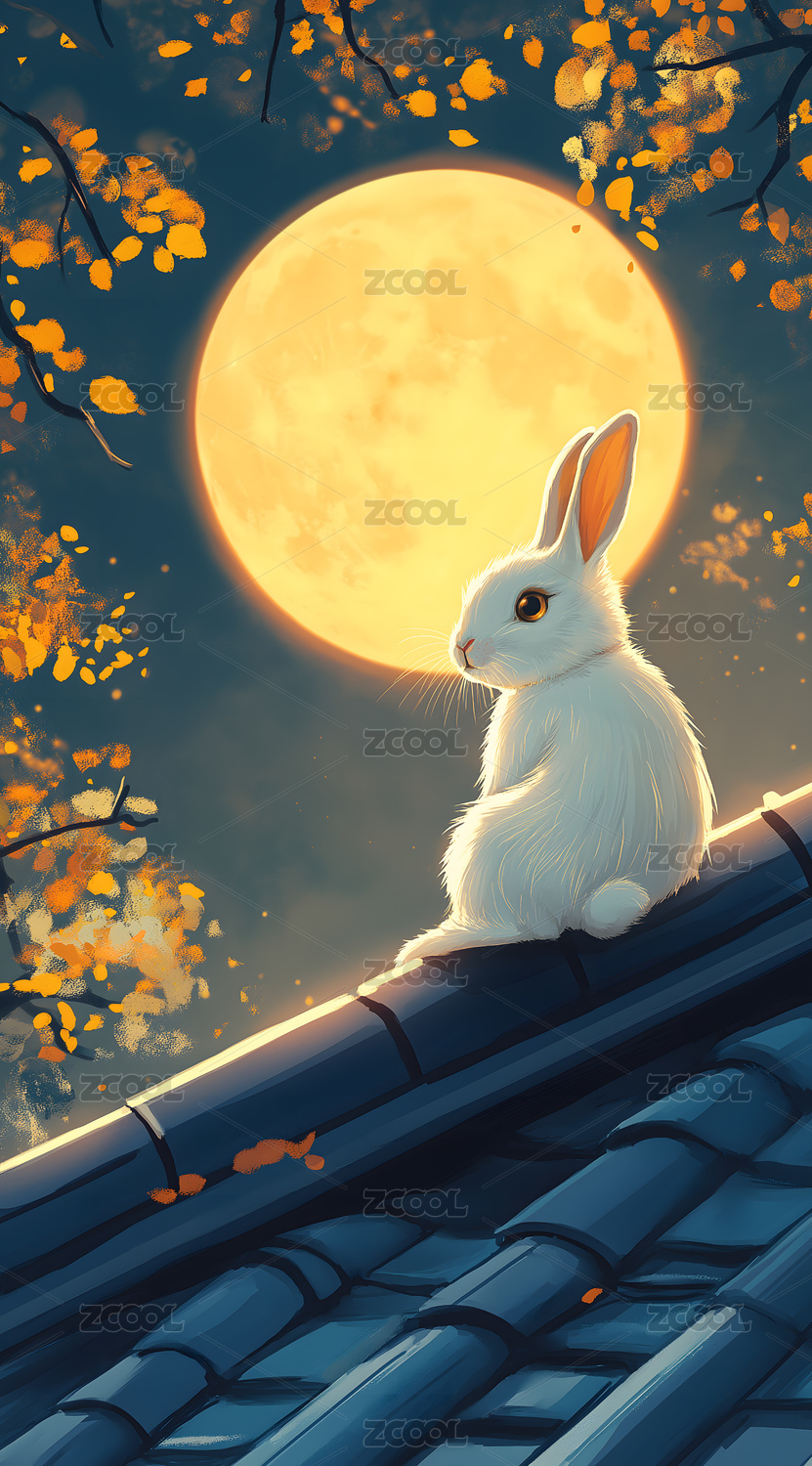 中秋明月下的小兔子