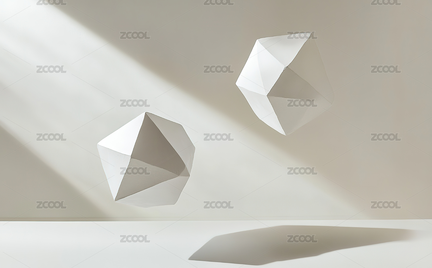 白色多面体悬浮场景