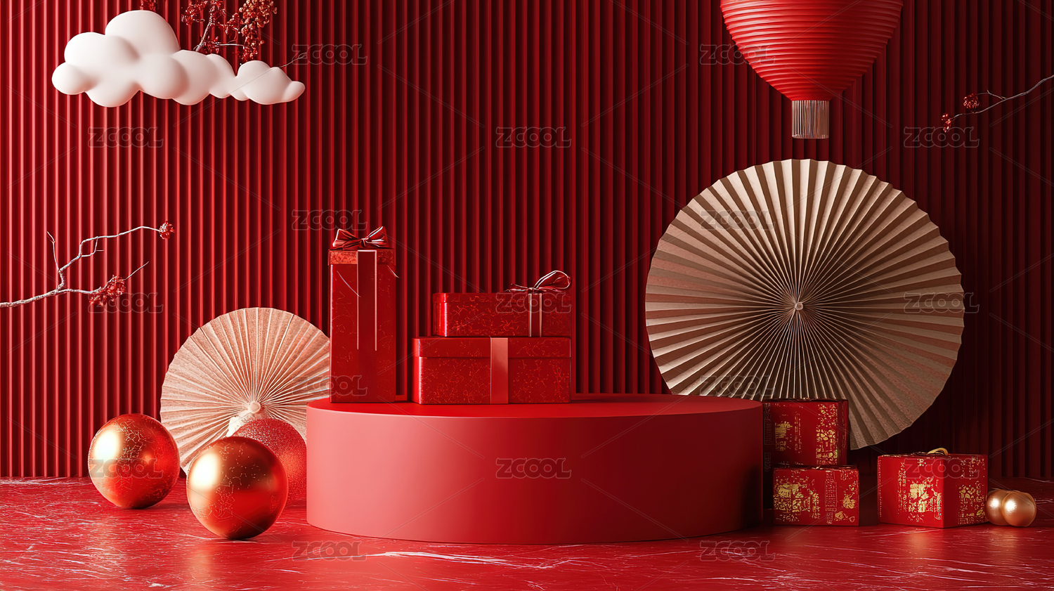 中国文化,三维图形,背景,春节,产品展台,节日,插画,新年,展览,传统节日