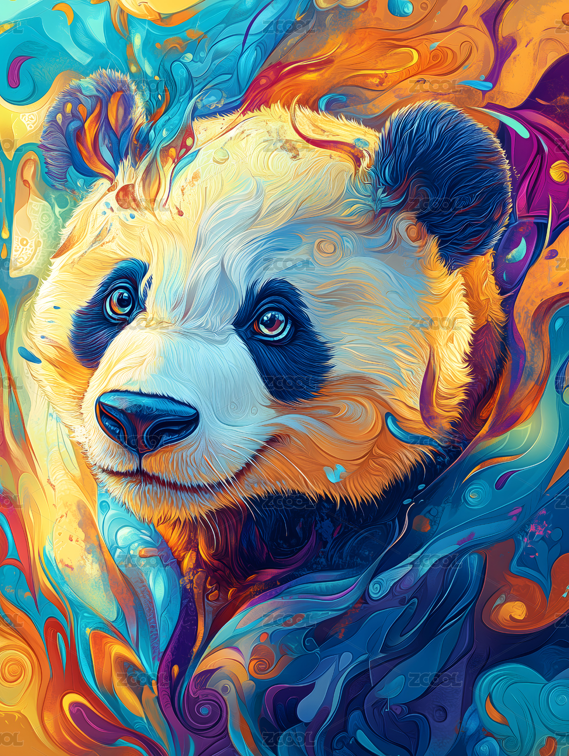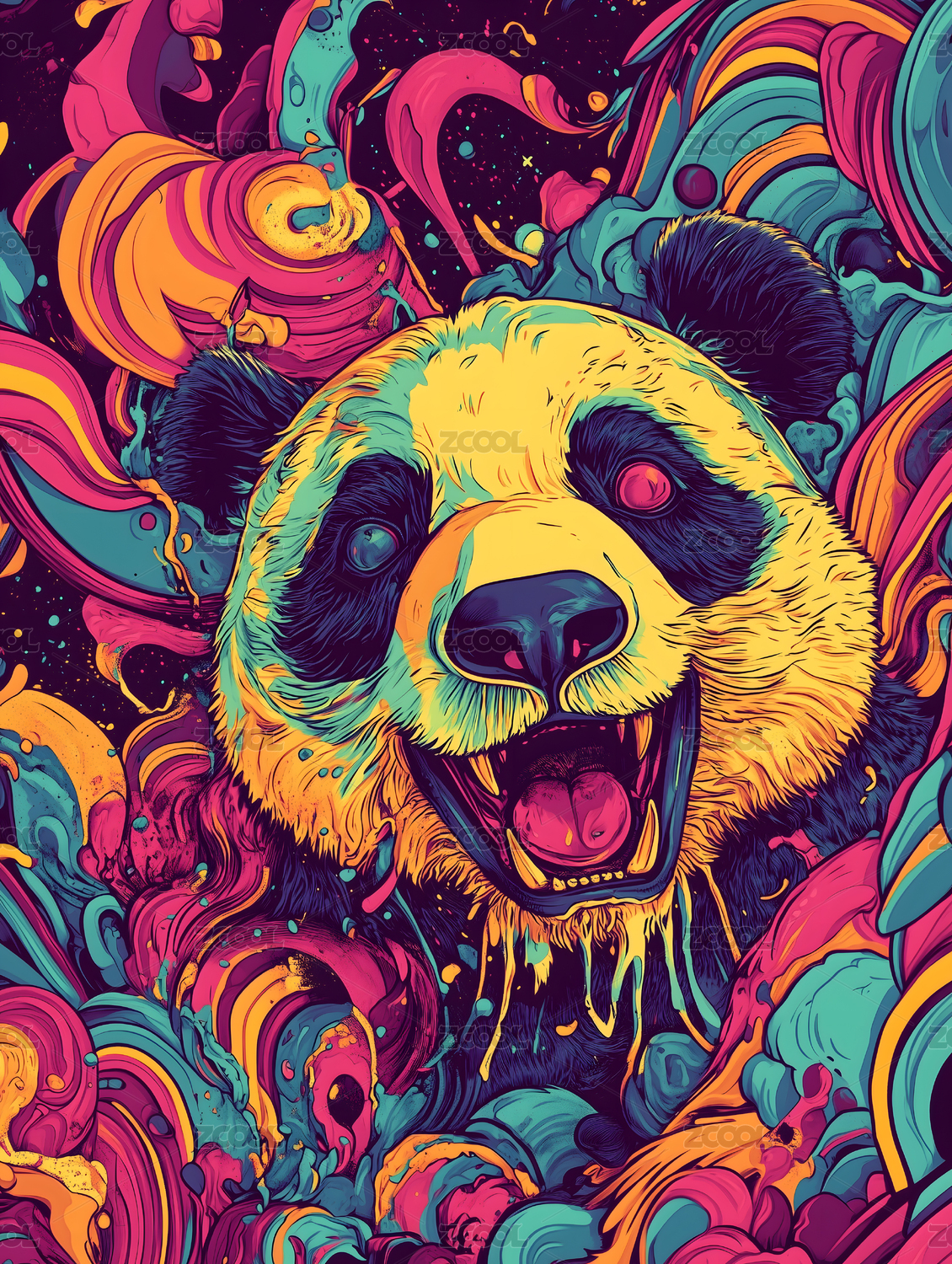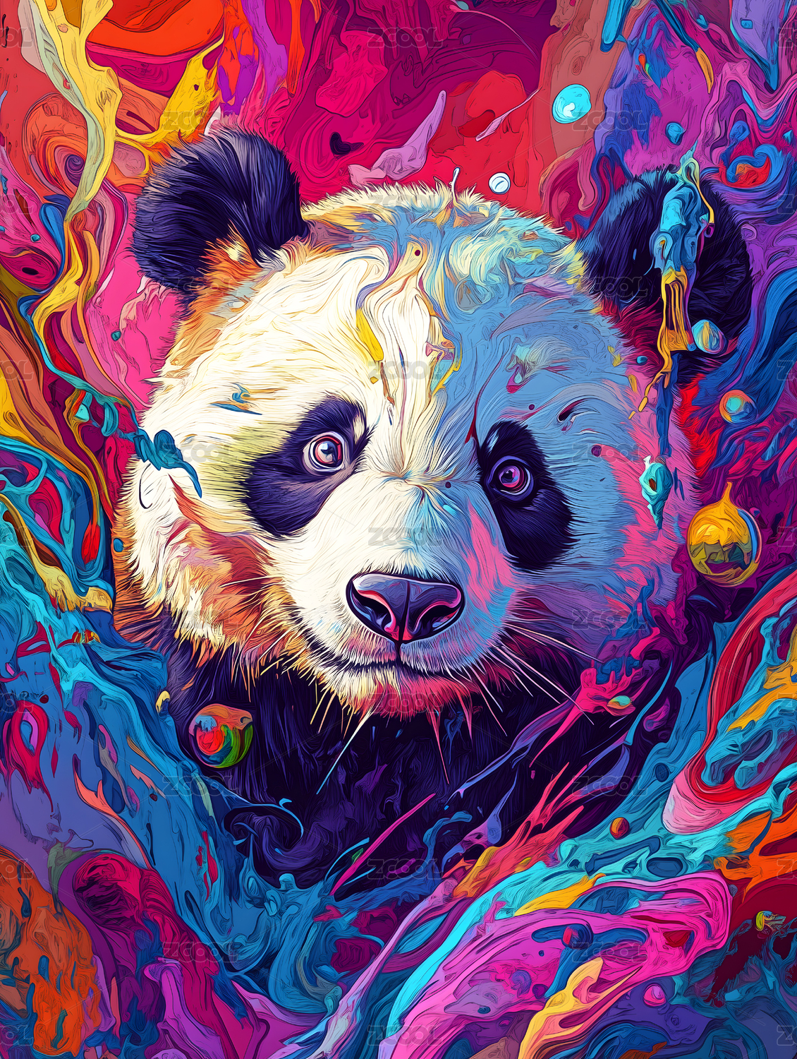 唯美的艺术感金属液态场景中的熊猫插画背景