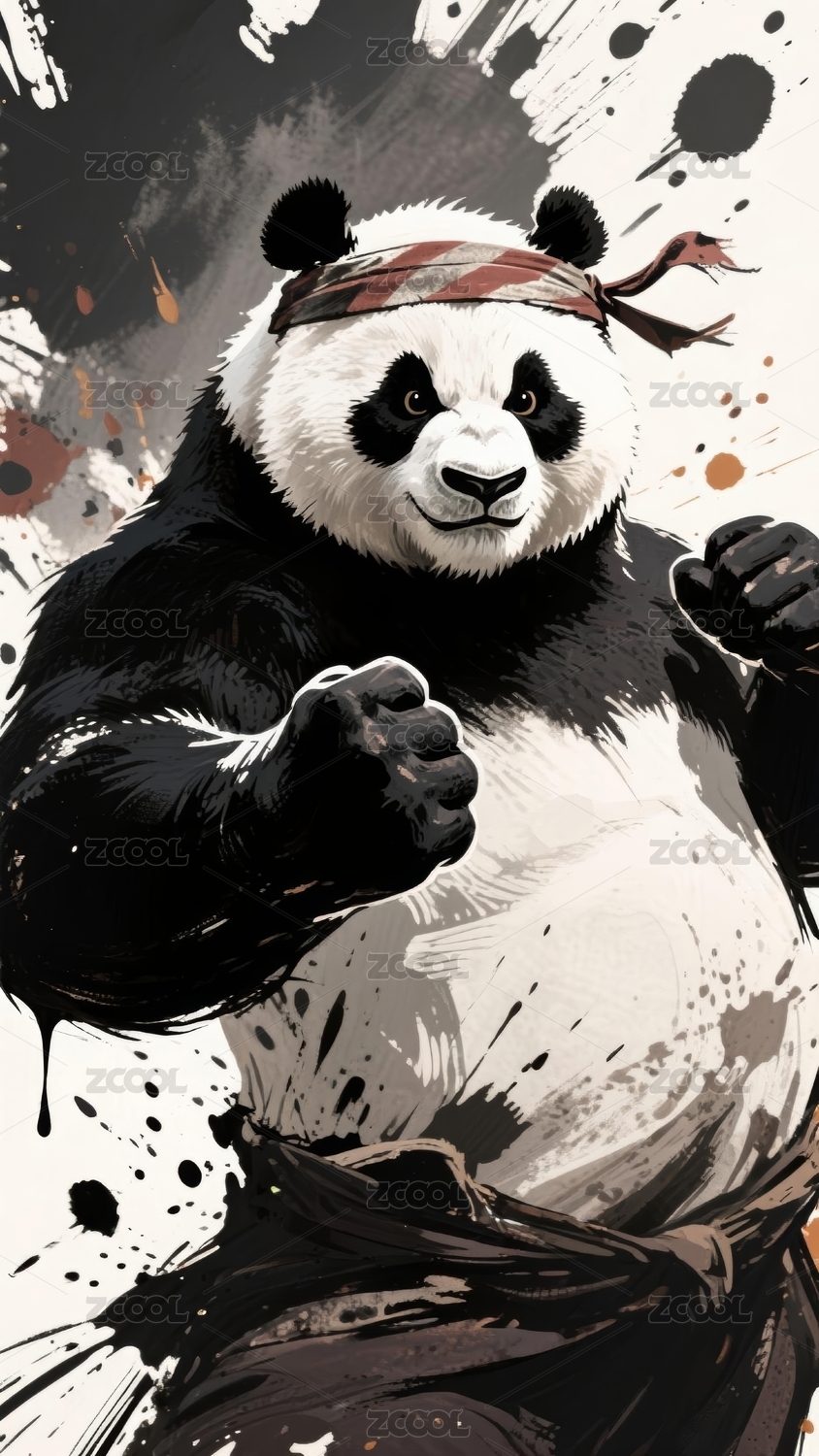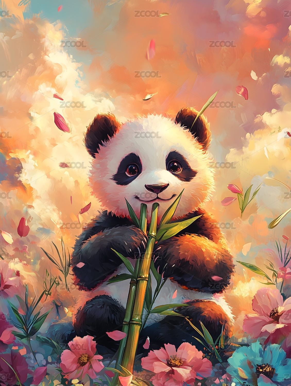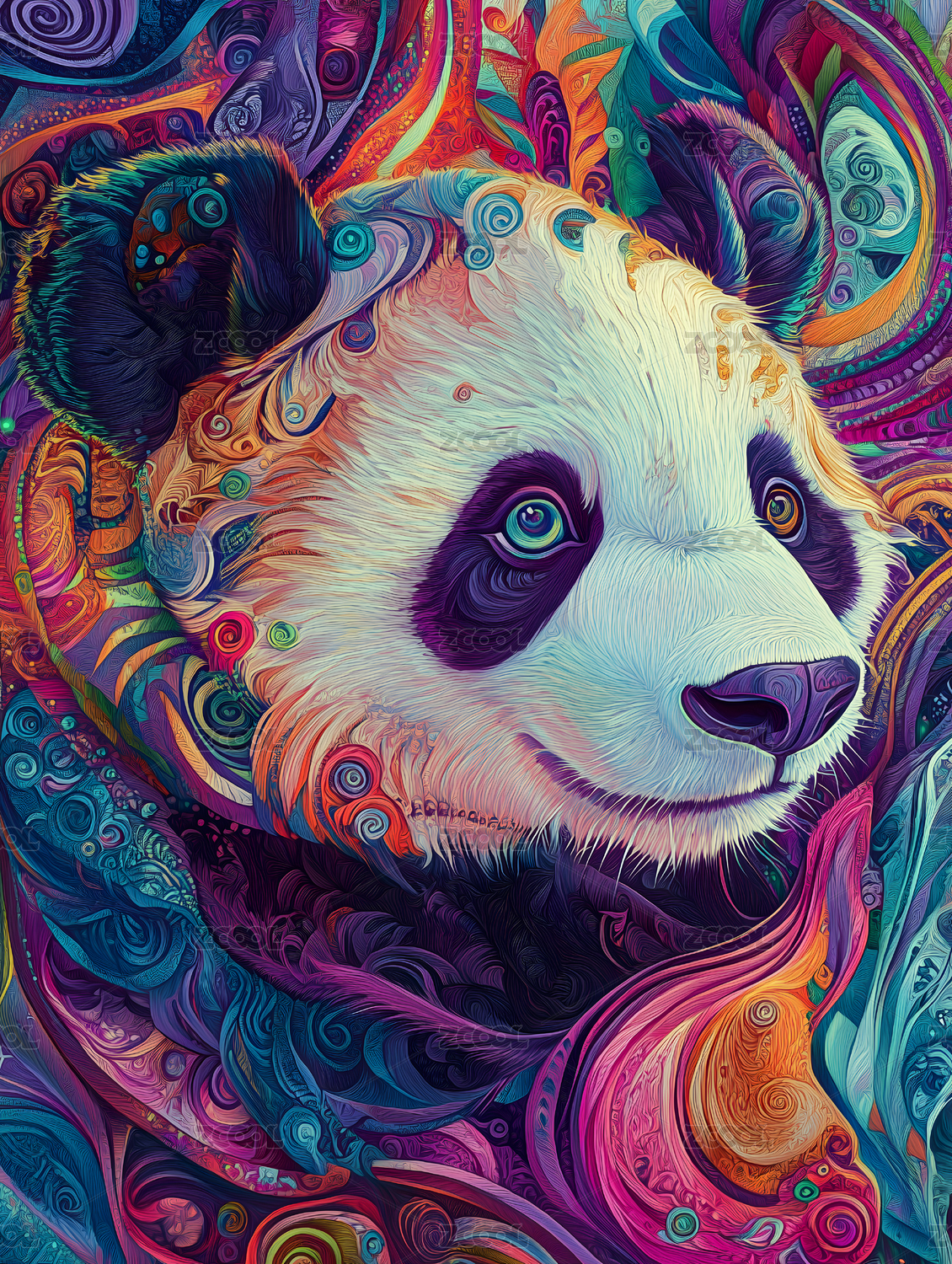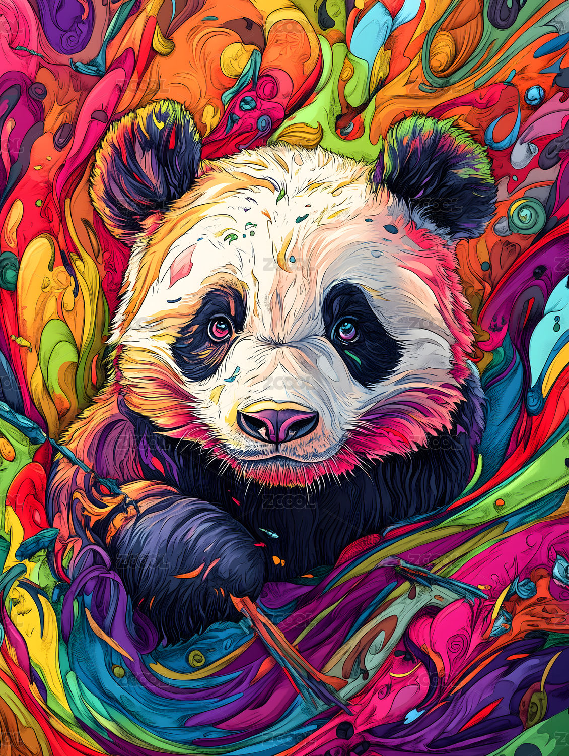 唯美的艺术感金属液态场景中的熊猫插画背景
