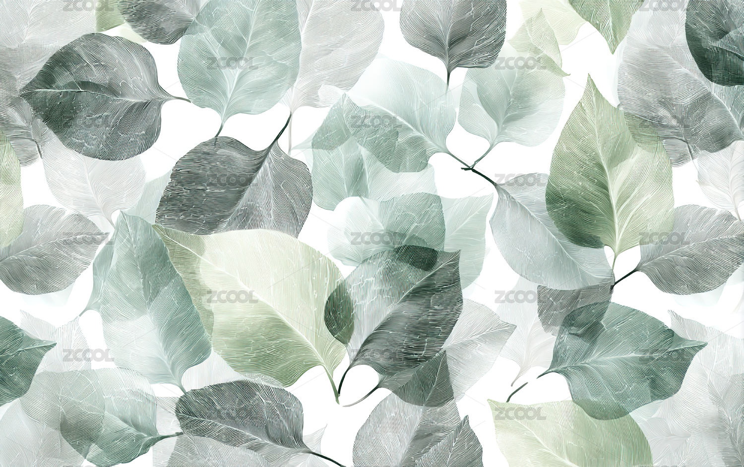 数码水彩,蓝绿叶子,印花图,图案,抽象,海报背景