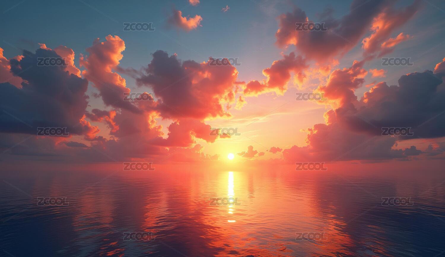 大海日出日落彩云火烧云梦幻唯美创意设计艺