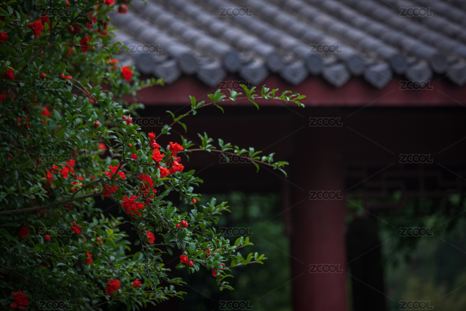 江南园林里美丽的杜鹃花。