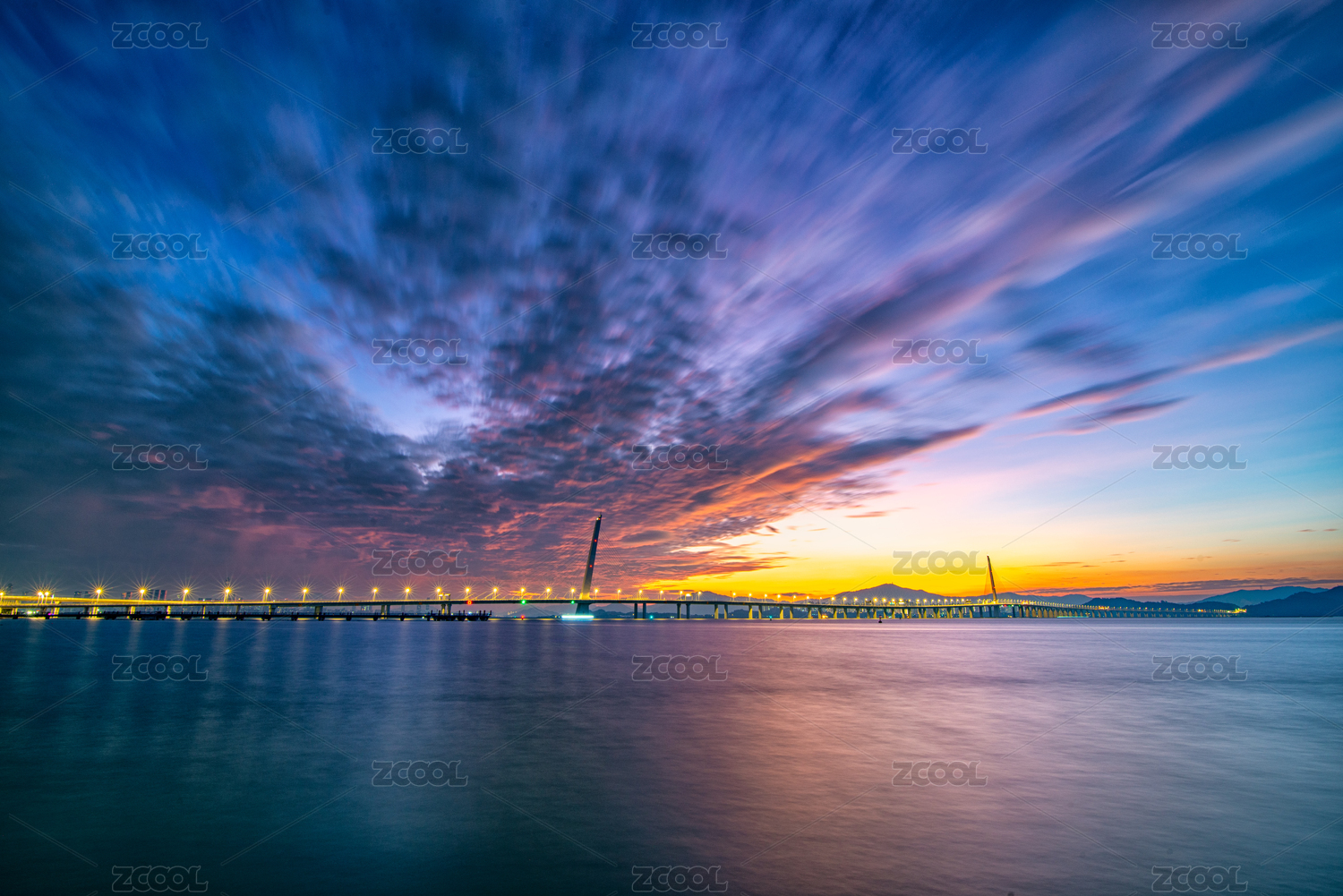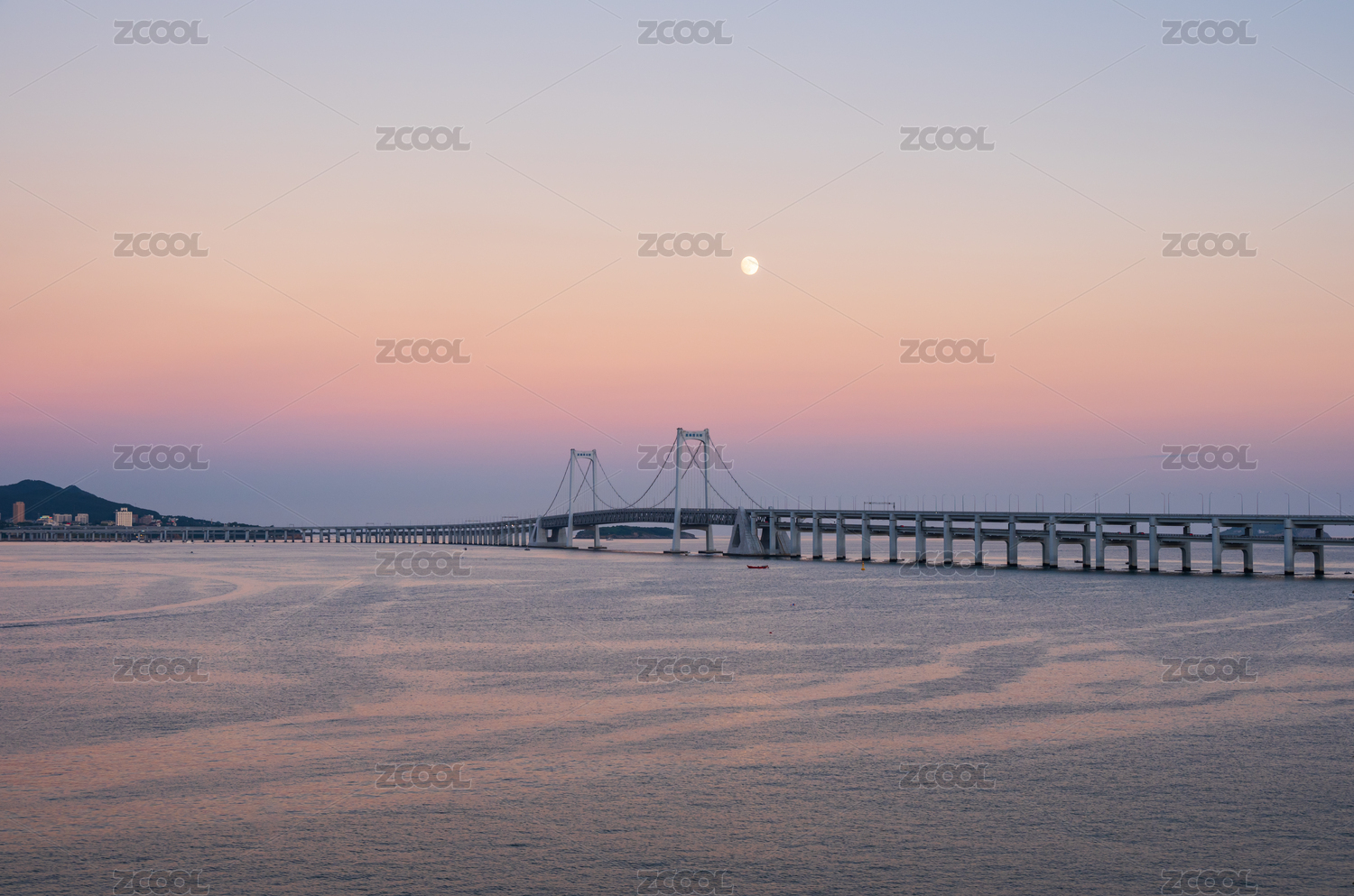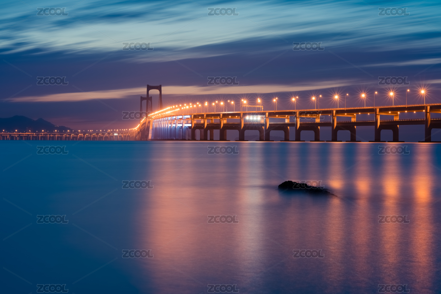 辽宁省大连市星海湾大桥日出前的蓝调时刻,