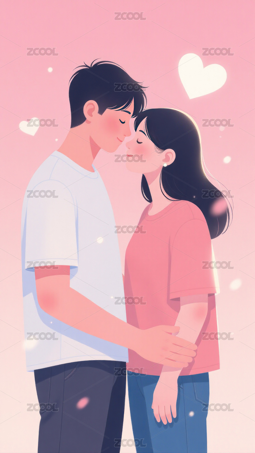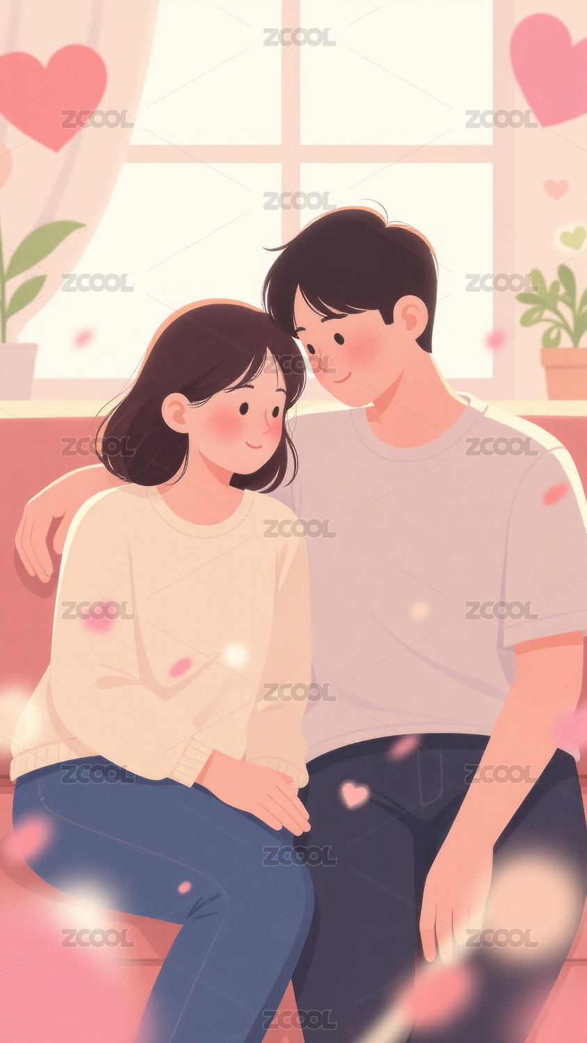 情侣间的甜蜜依偎情侣间的甜蜜瞬间情侣插画