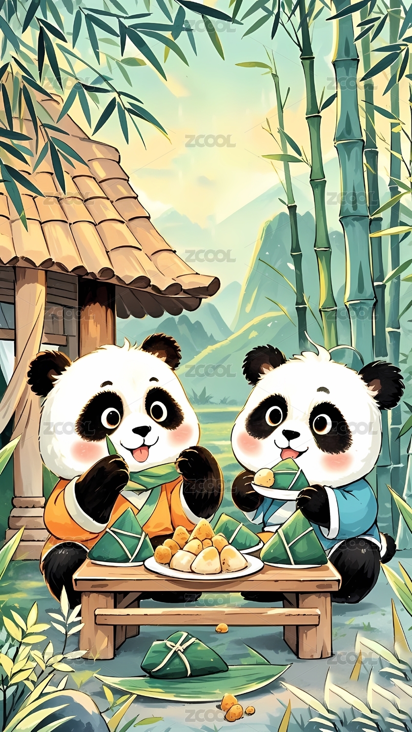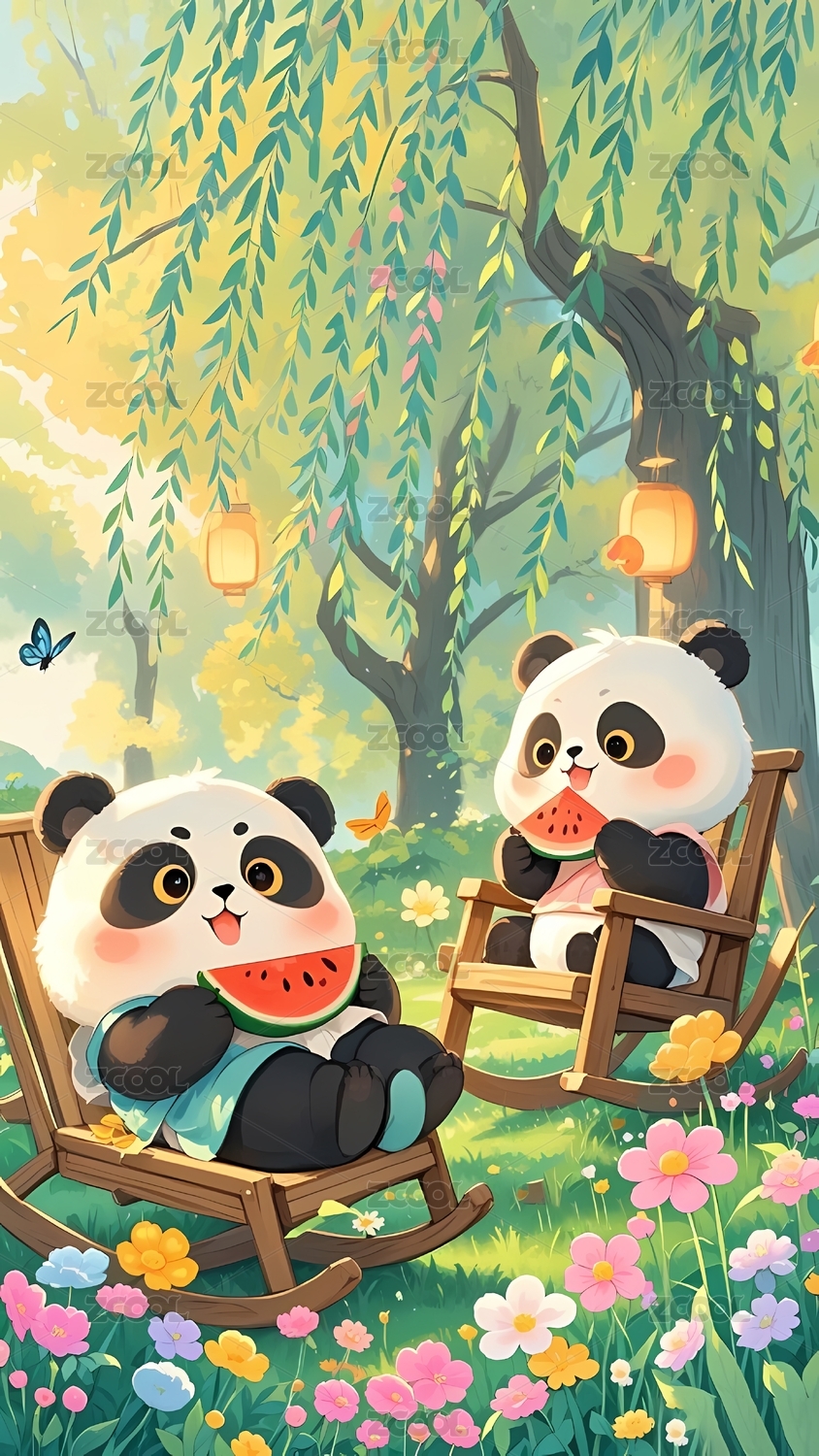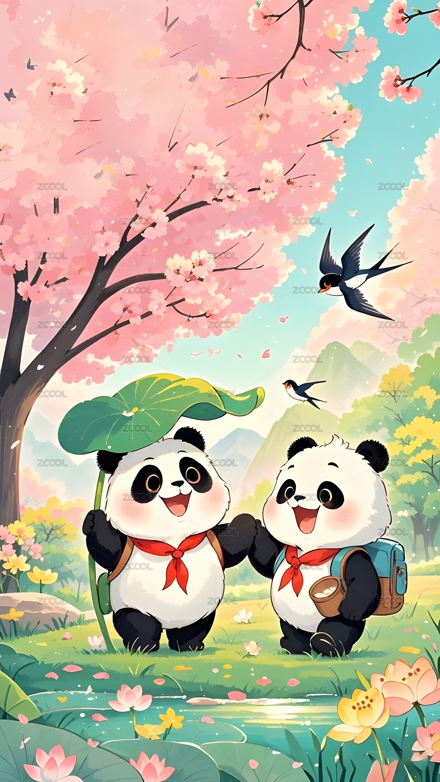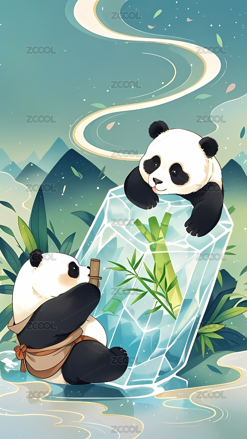 熊猫,节气,节气插画,插画海报,熊猫主题,谷雨,立春,春分,芒种,大暑