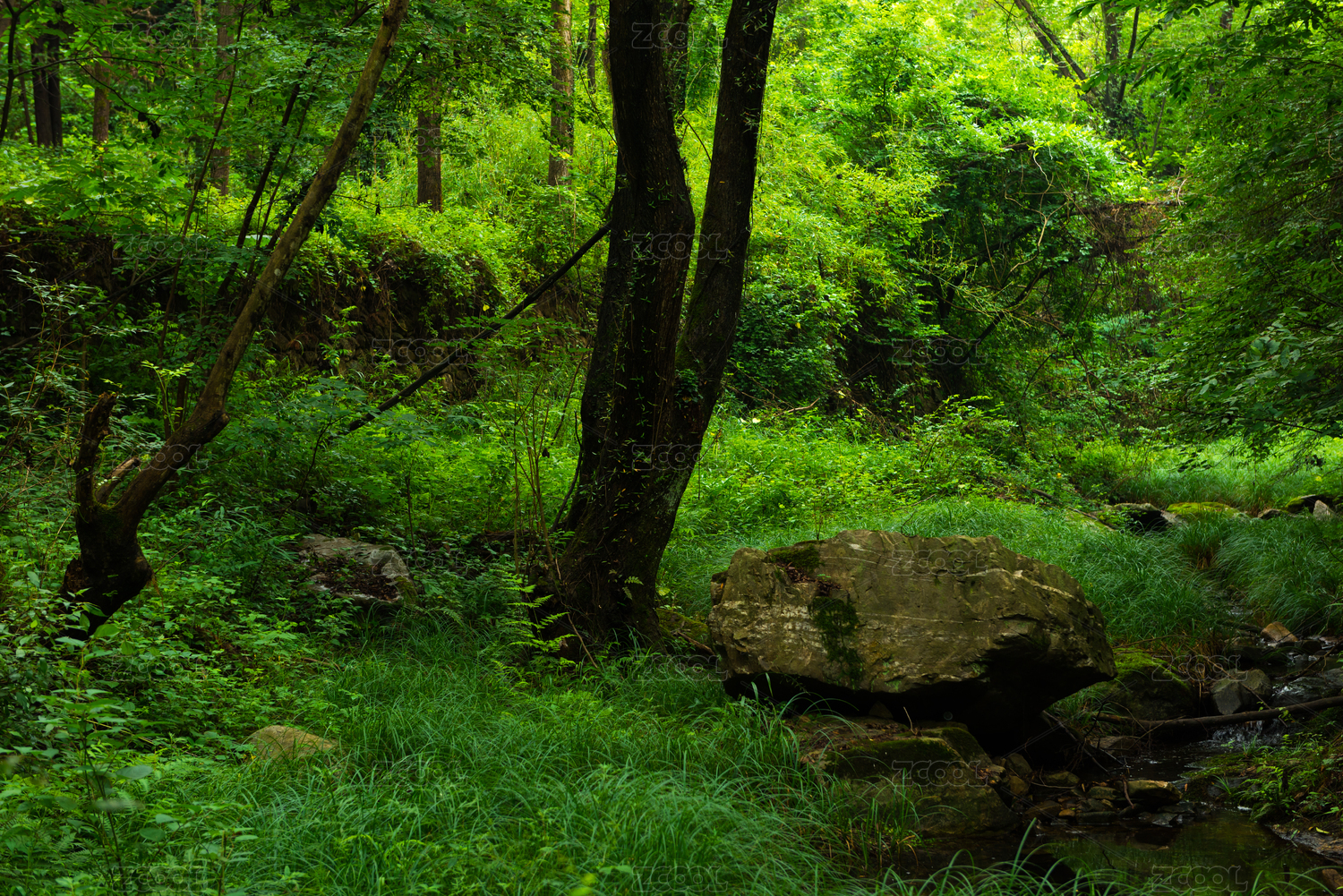 大自然绿色树林森林绿野仙踪小河溪流独木桥
