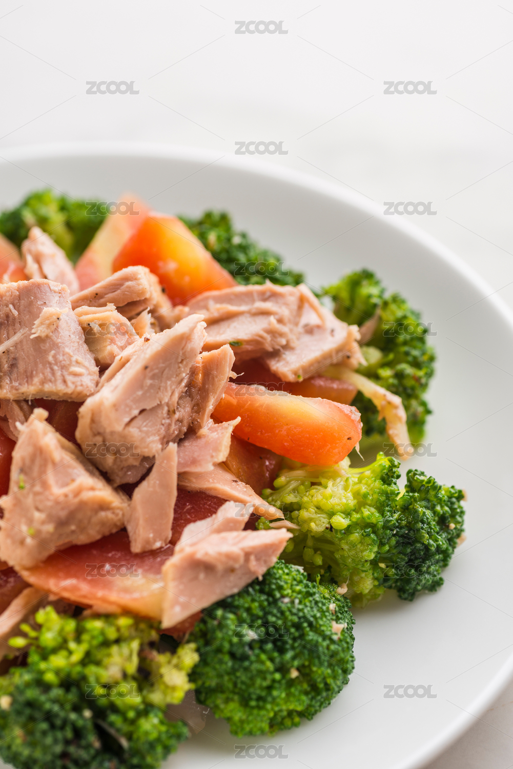 橄榄油浸金枪鱼拌西兰花及胡萝卜