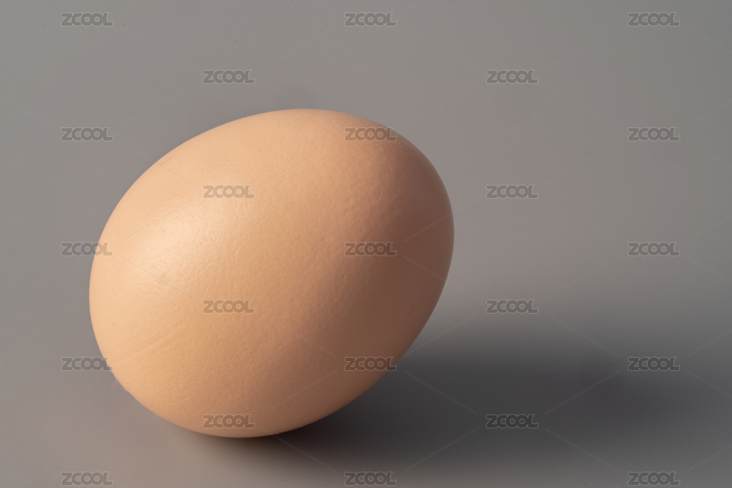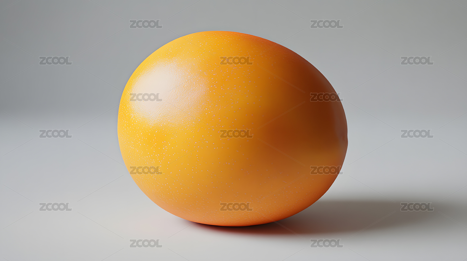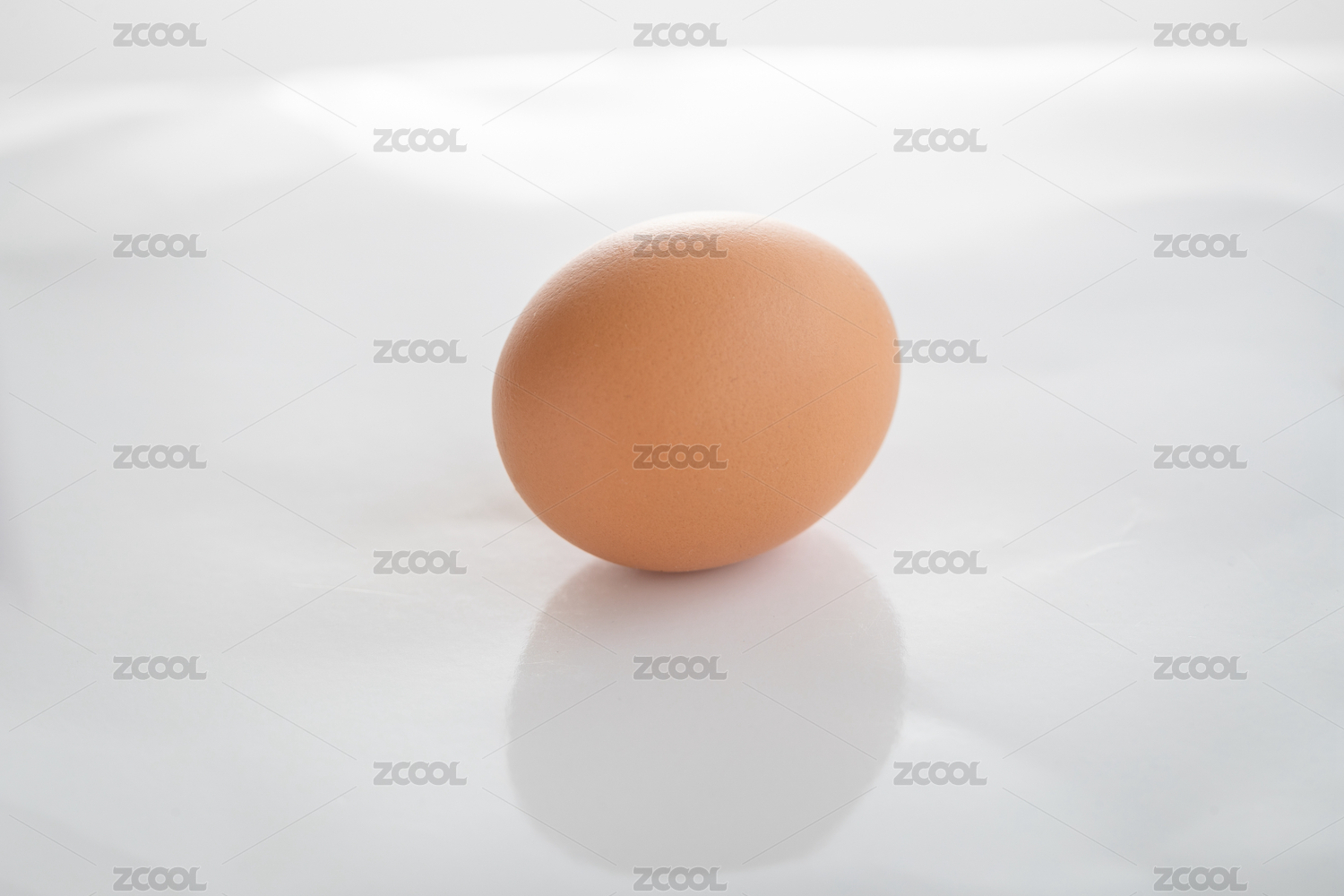俯视白色背景中一只带壳有倒影的黄色鸡蛋