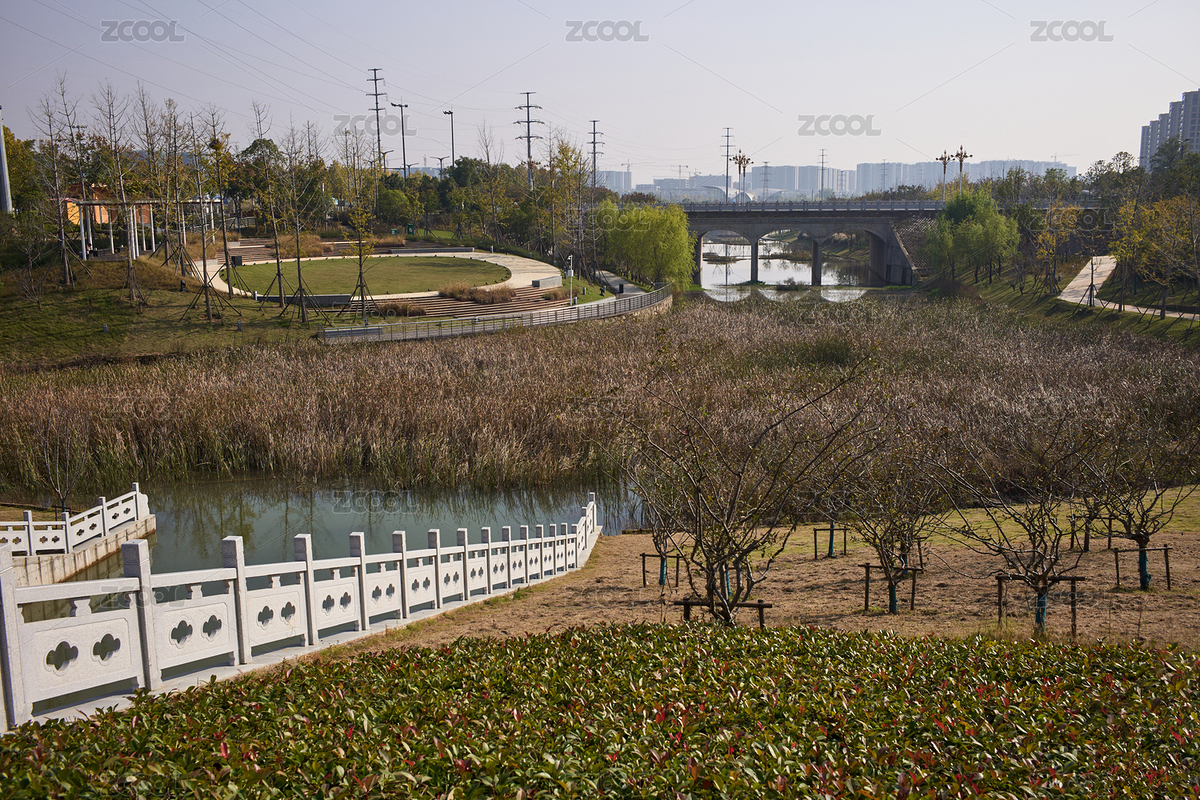 中国湖北武汉蓝玉项链湿地生态公园冬季景观