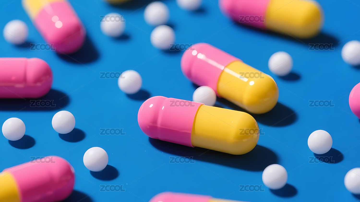 胶囊药片散落蓝色背景