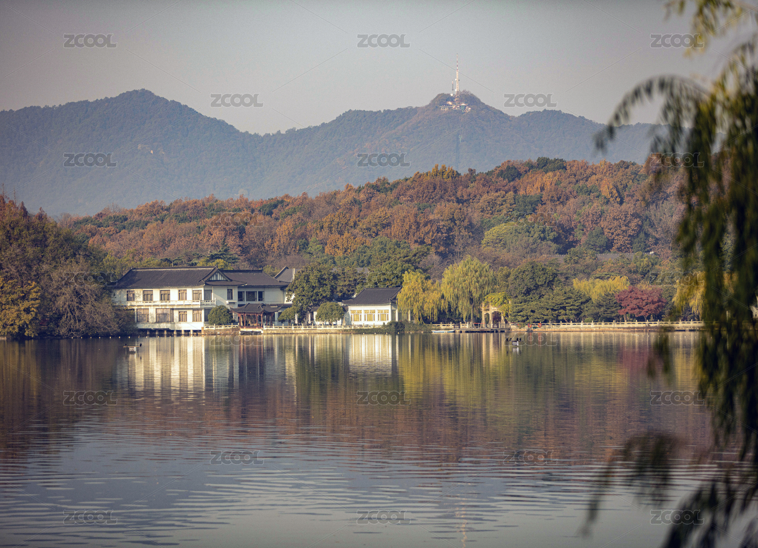 中国浙江杭州西湖景区,五彩缤纷的山水风光秋景