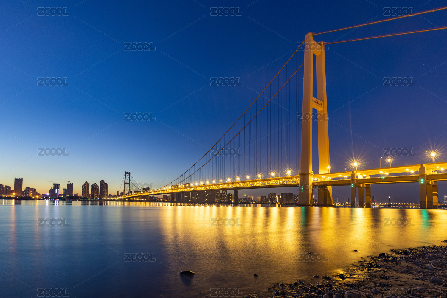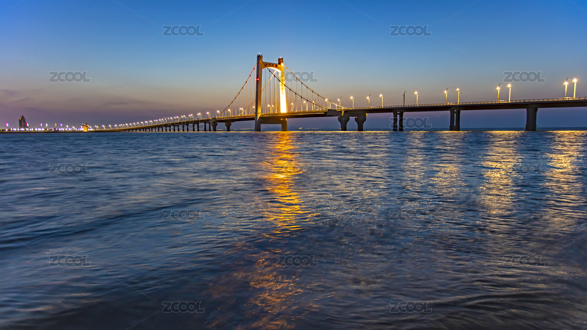 辽宁省大连市星海湾大桥日出前的蓝调时刻,