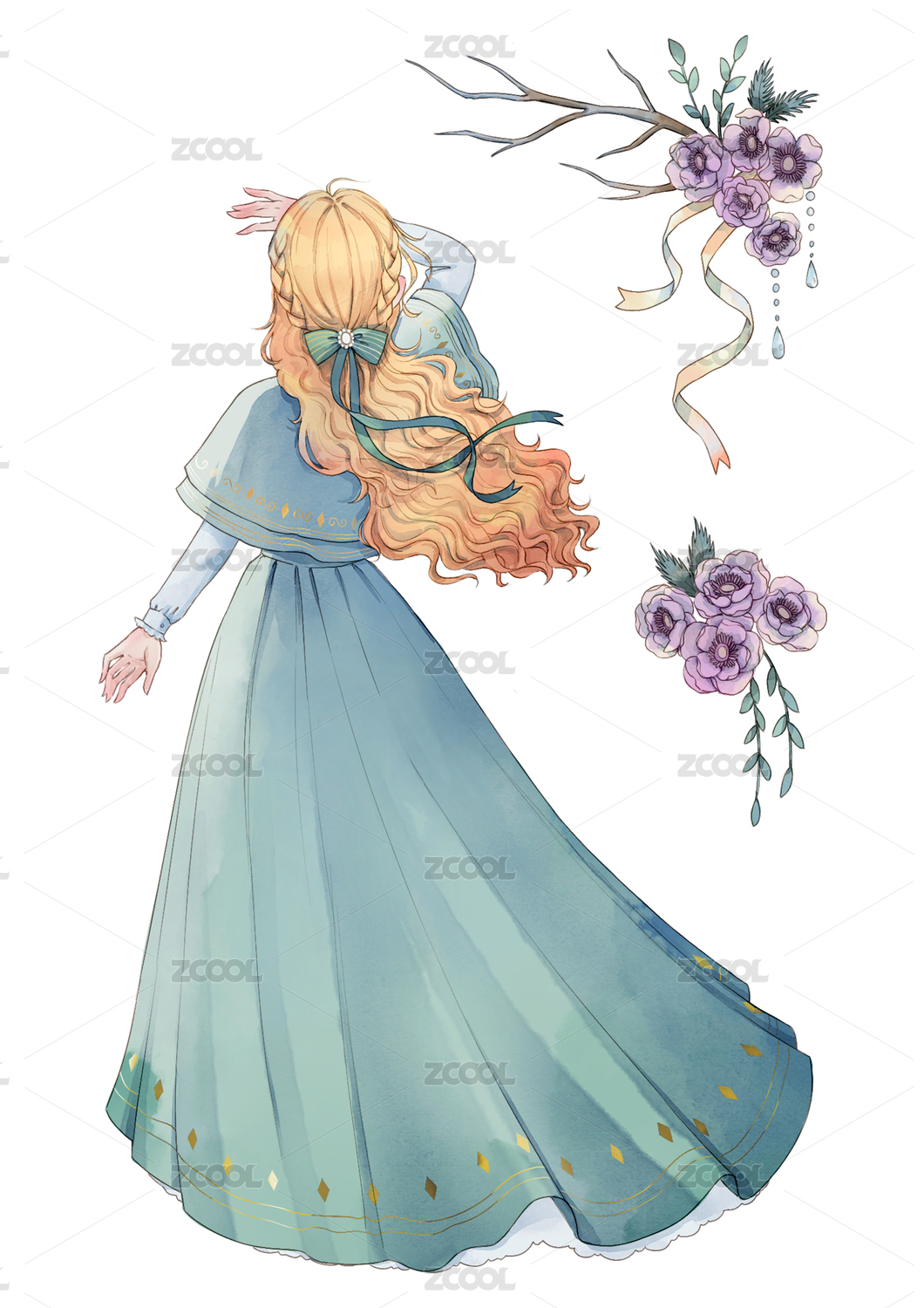 二次元乱世佳人礼服连衣裙女孩插画