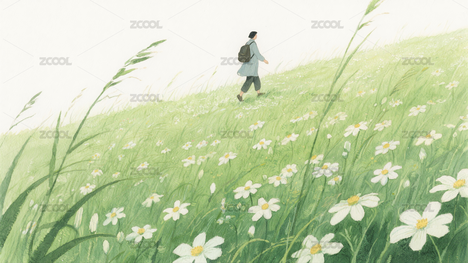 蓝天,白云,青草,草坪,田野,少女,短裤,长发,休闲,乡村