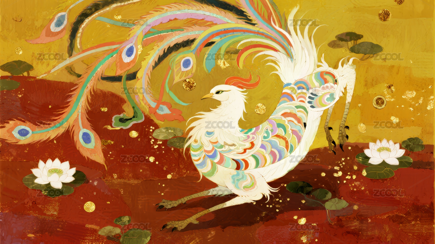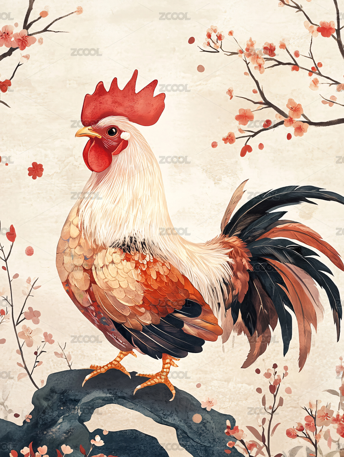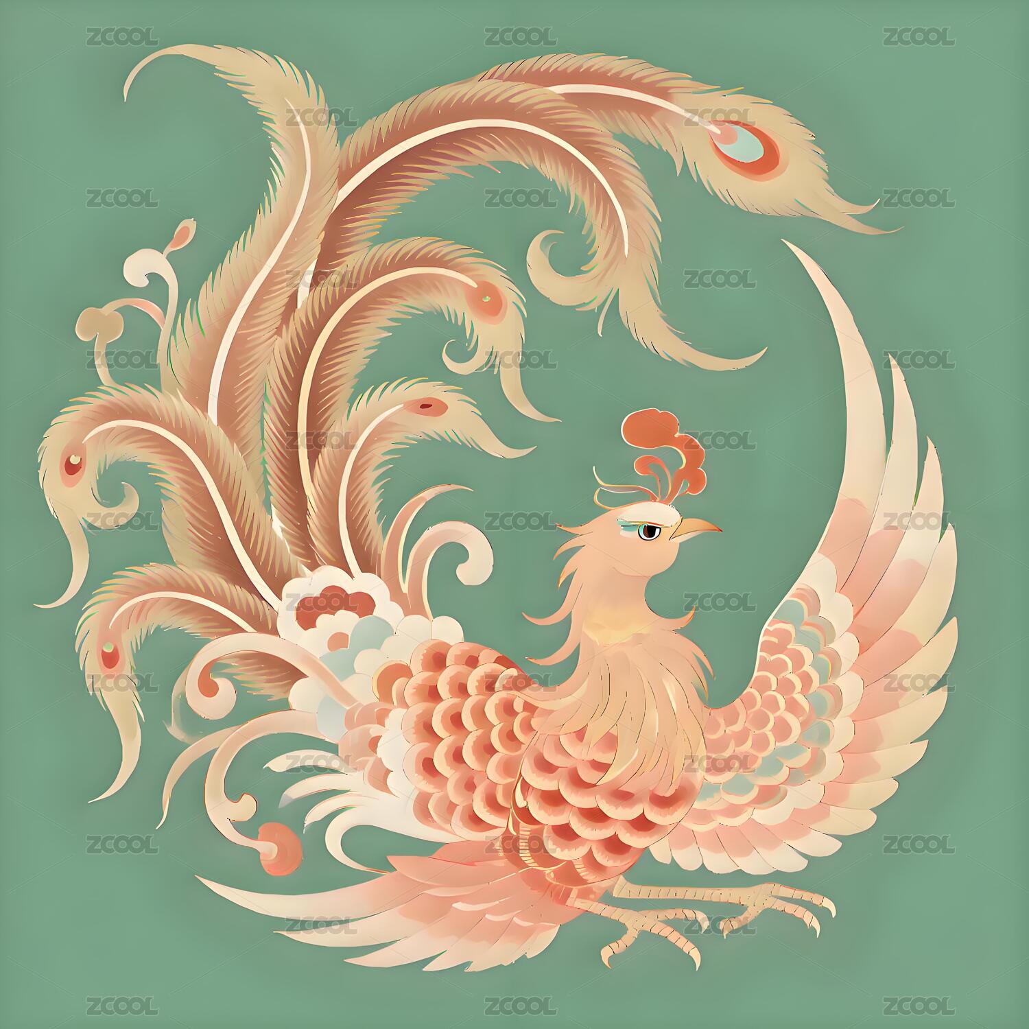 十二生肖之酉鸡版敦煌飞天国风小场景插画