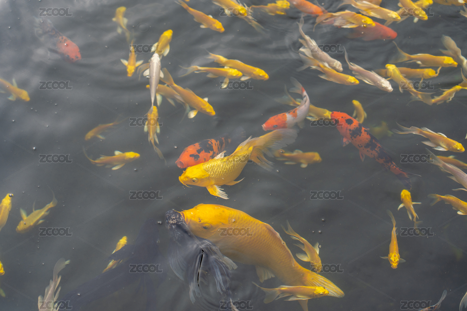 池塘中颜色艳丽追逐嬉戏的锦鲤
