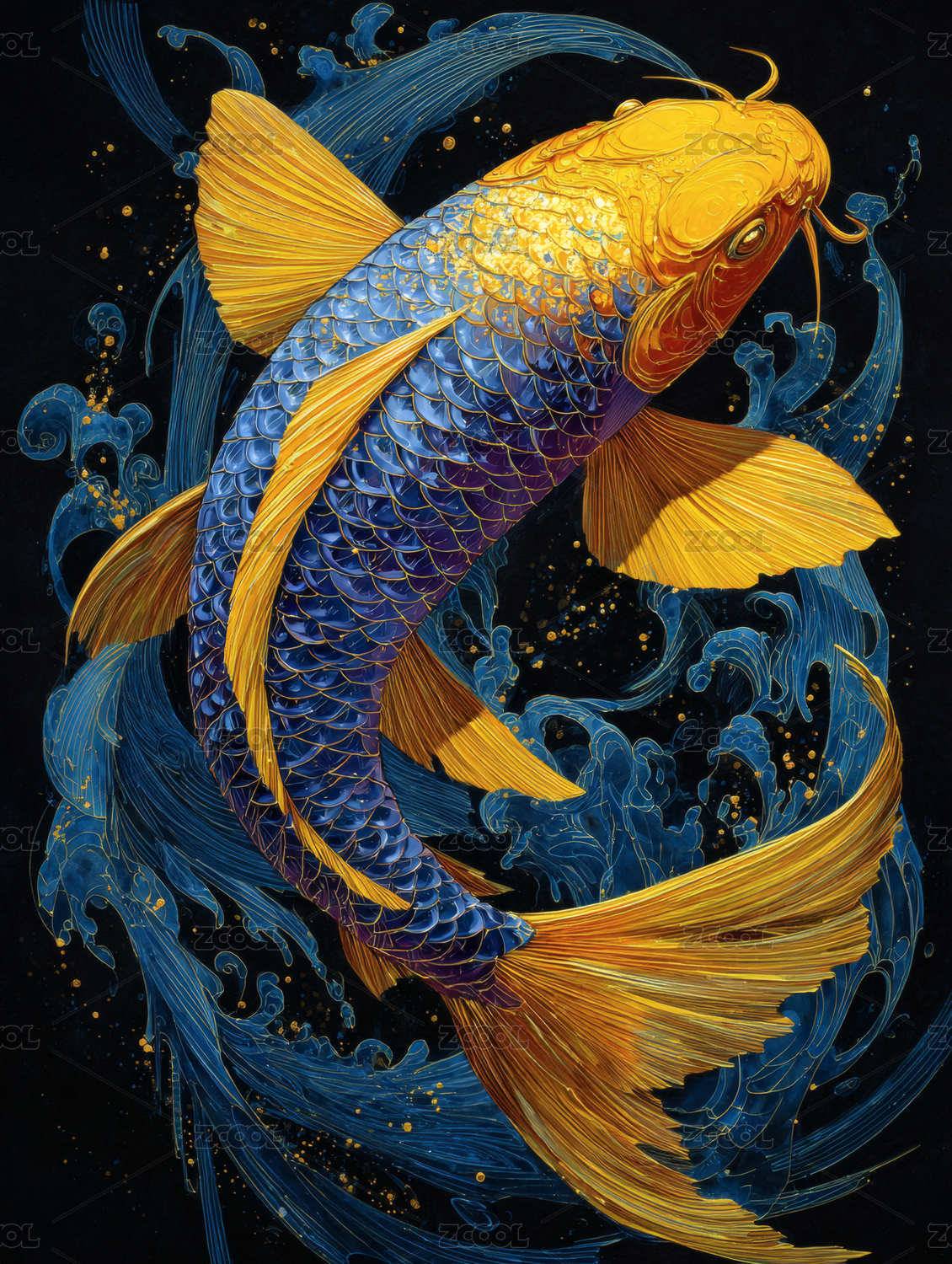 发着金光金灿灿的吉祥祥瑞锦鲤素材