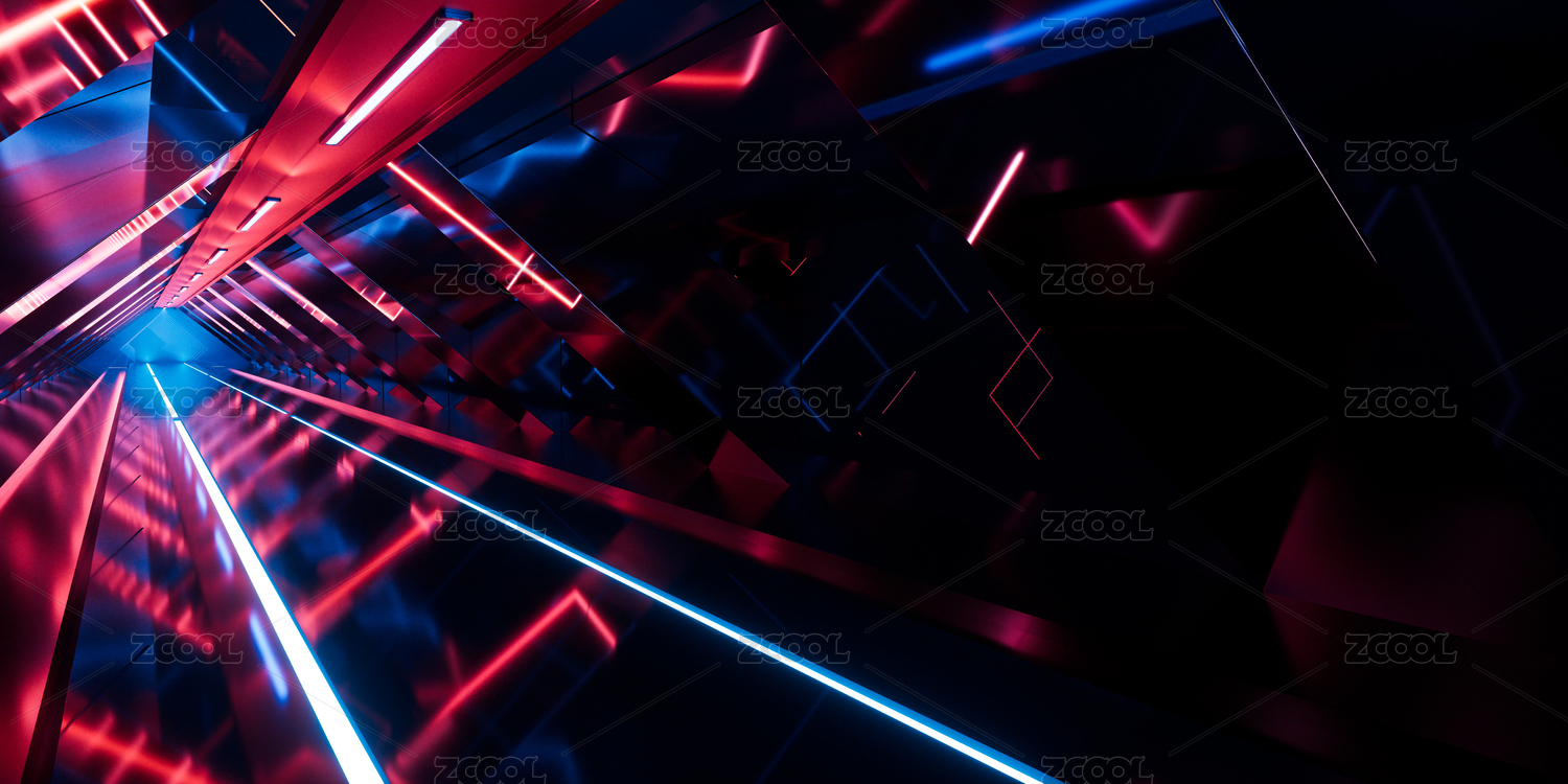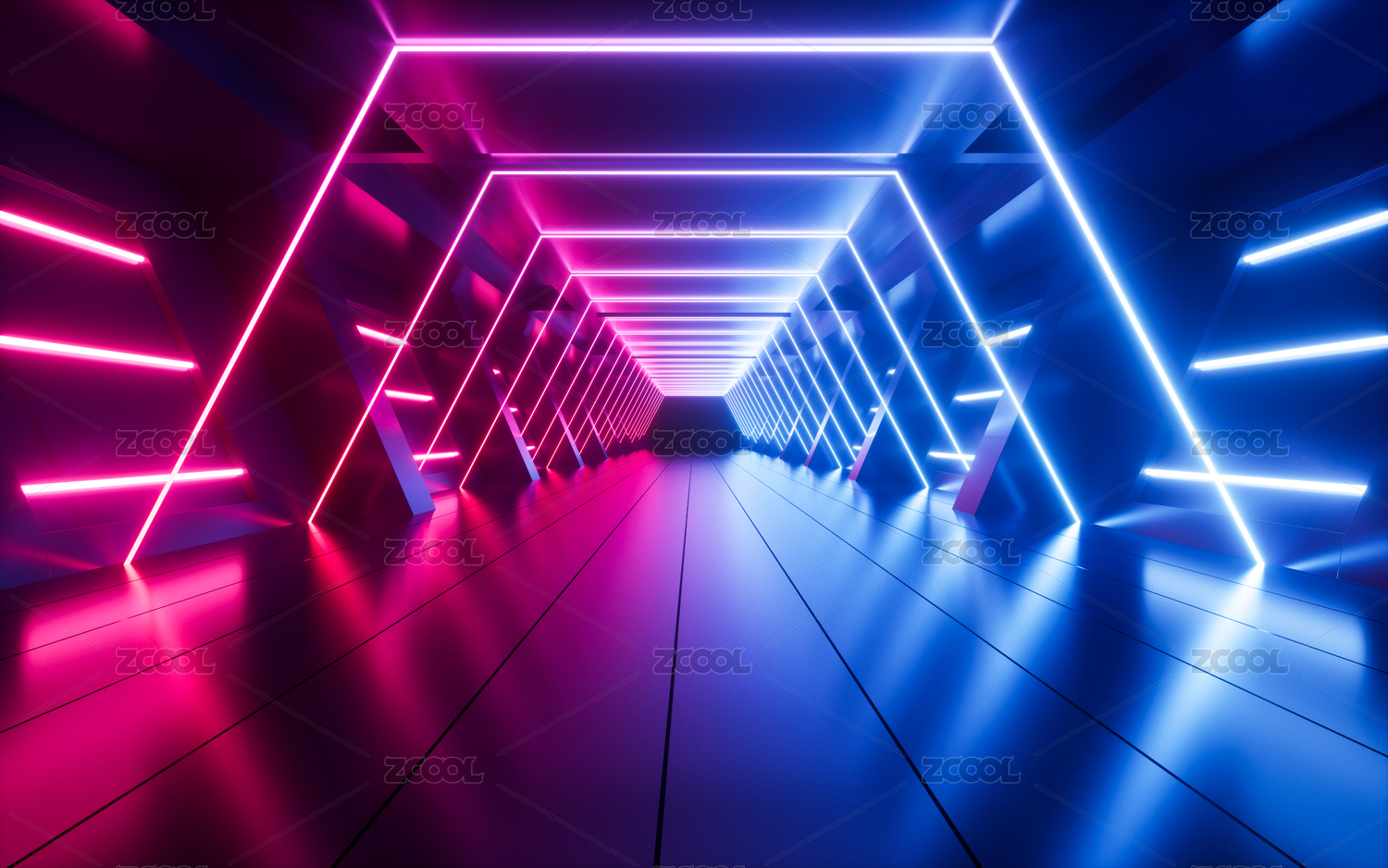 抽象霓虹灯光建筑空间走廊背景时尚朋克摇滚