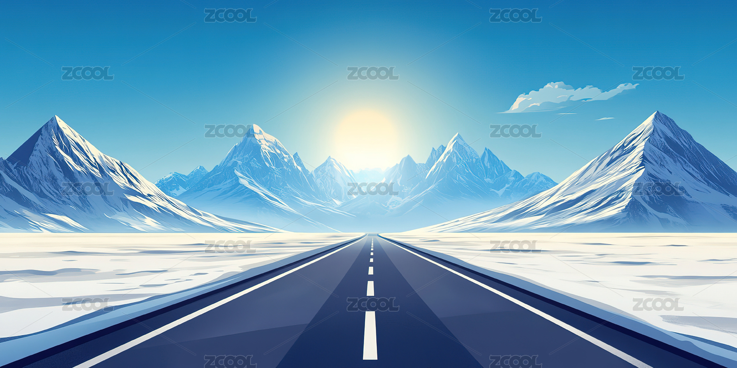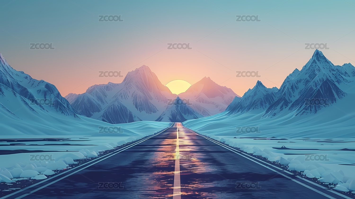 数码,科技,道路,前方,天际线,雪,山,场景,青色,阳光