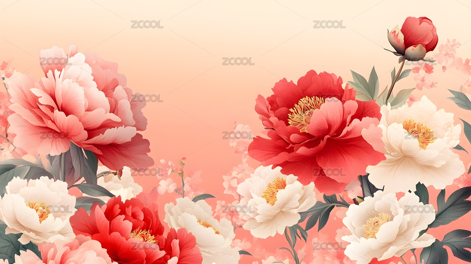 红粉色牡丹花卉图案