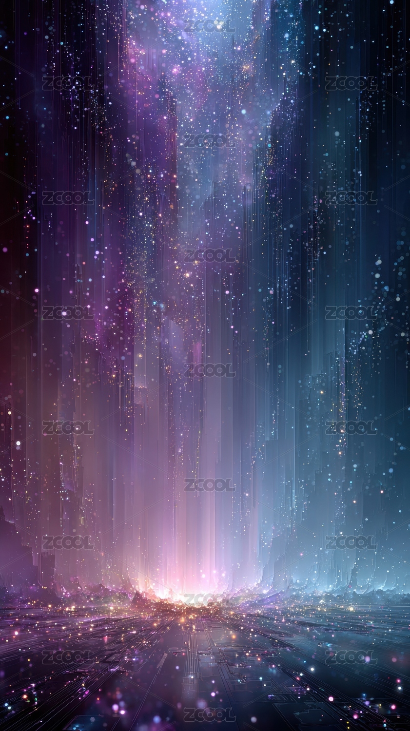 绚丽多彩的梦幻粒子垂落景象