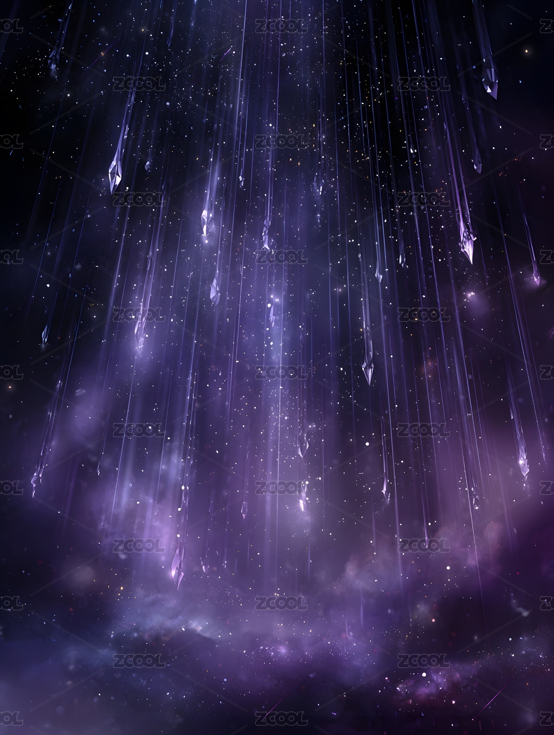 紫色梦幻星空流星洒落景象