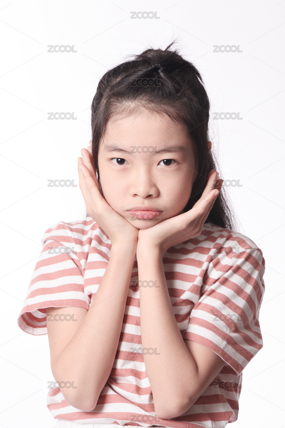 白色背景下顽皮可爱的中国小女孩(儿童)