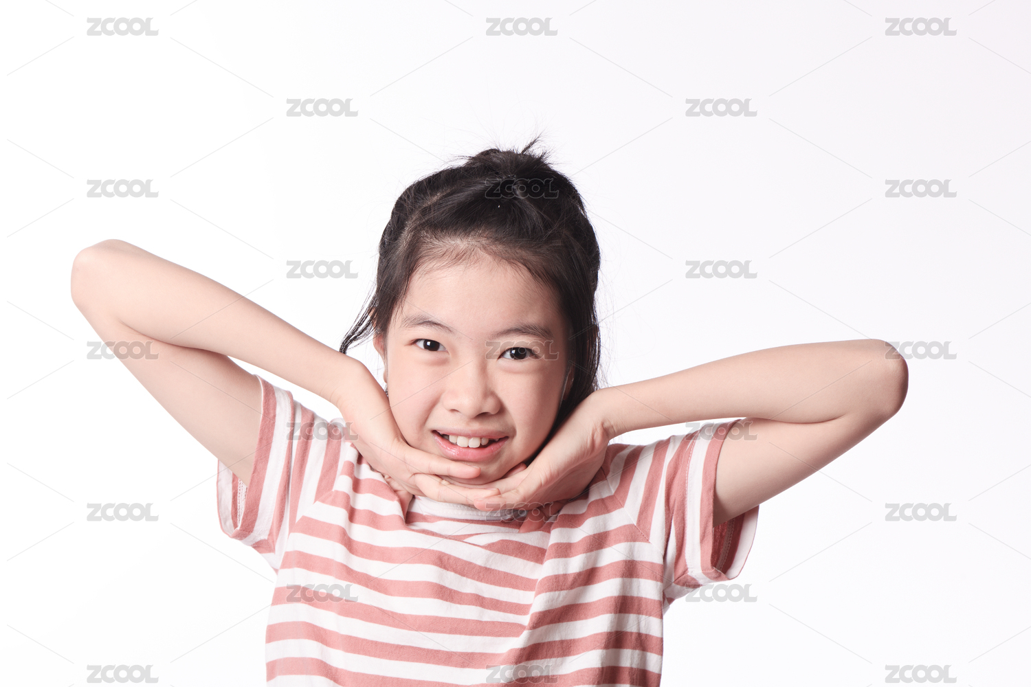 女童微笑这站在白背景前