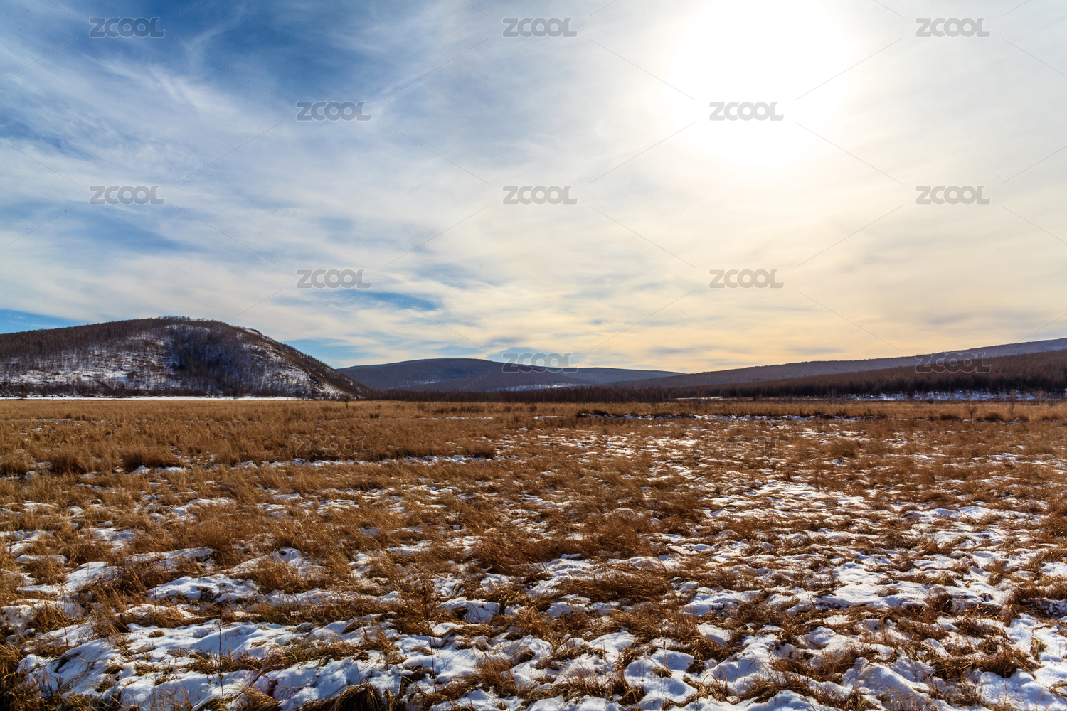 中国黑龙江第一湾冬天冰封雪堆的河流现象