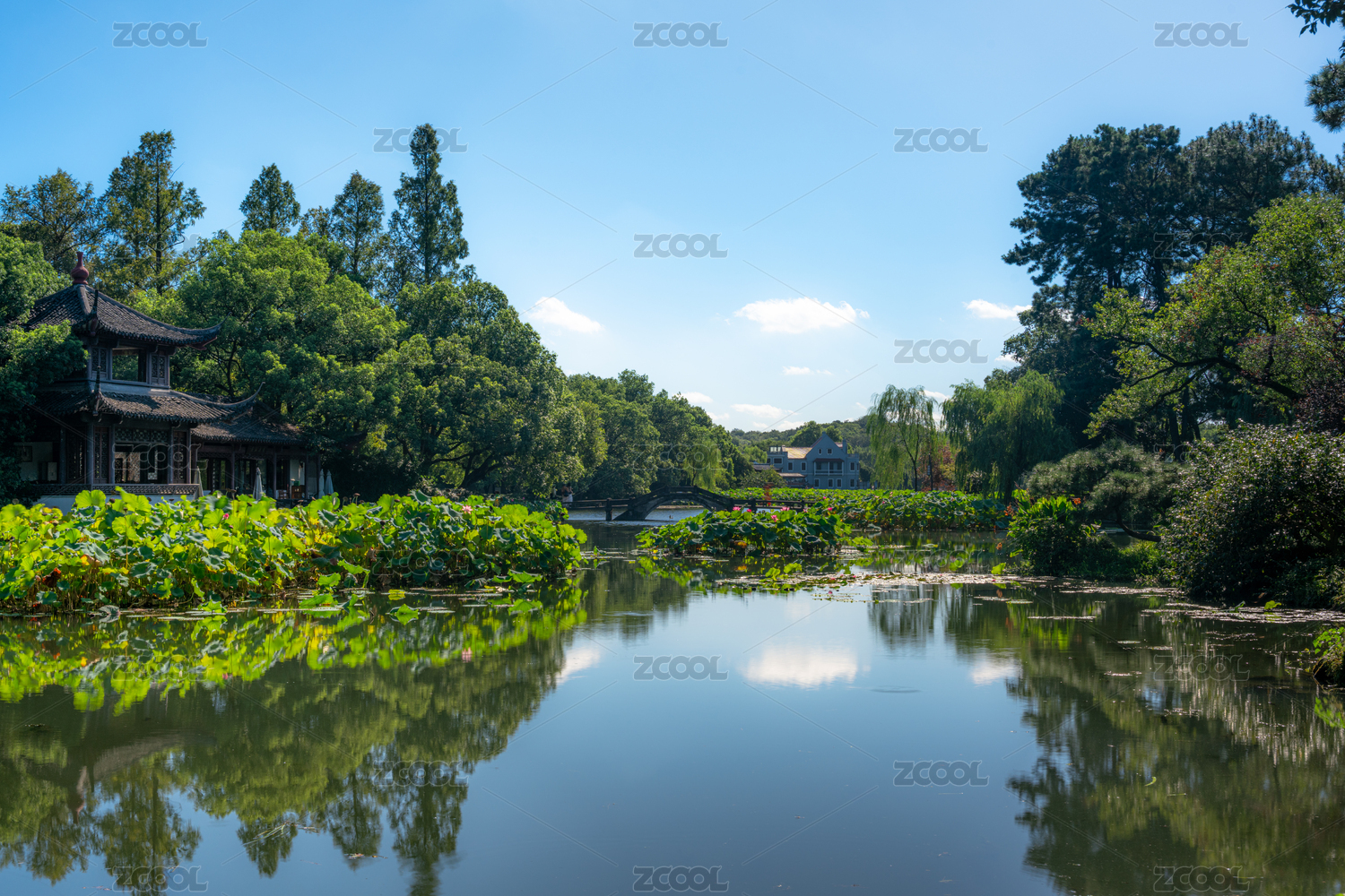 中国浙江杭州西湖景区曲院风荷,亭台楼阁