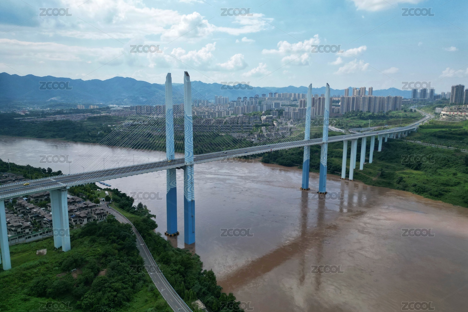 湖北宜昌夷陵长江大桥夏日航拍风光