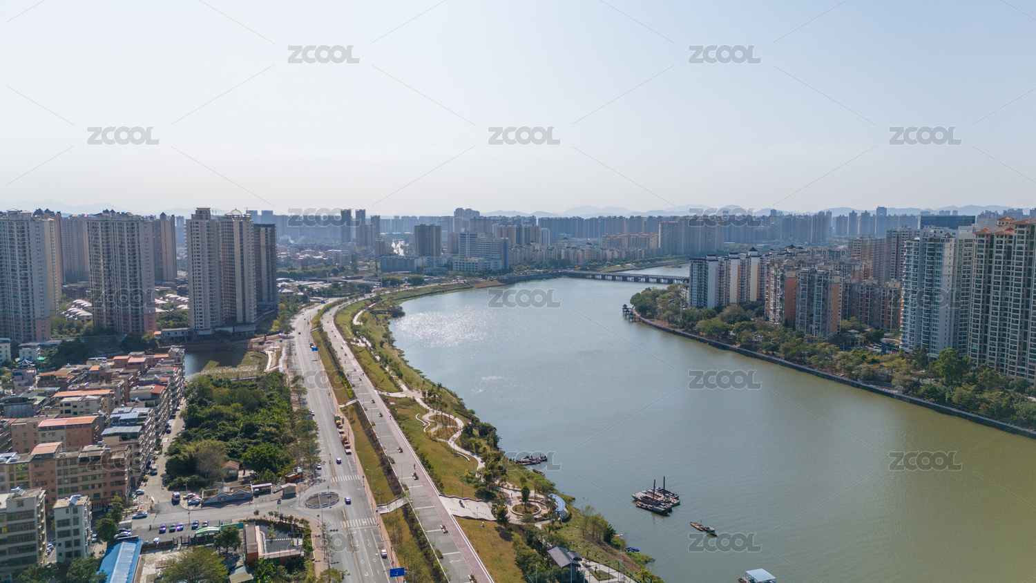 航拍白昼蓝天万里无云下惠州城市发展景观