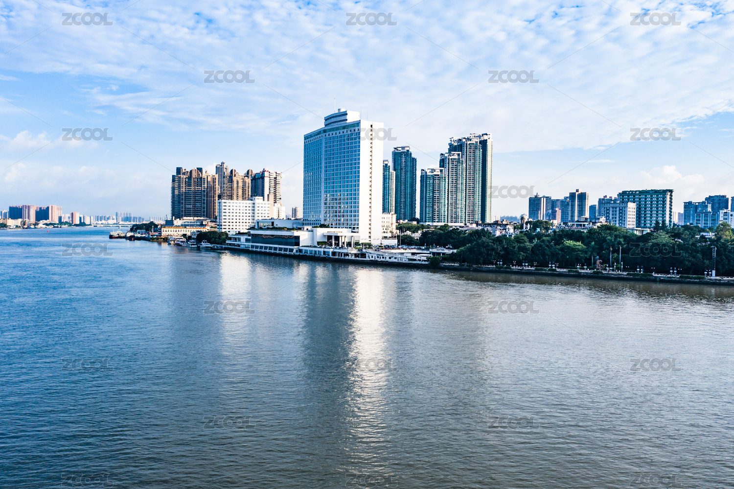 中国广州城市风光,珠江,白鹅潭,白天鹅宾馆的清晨