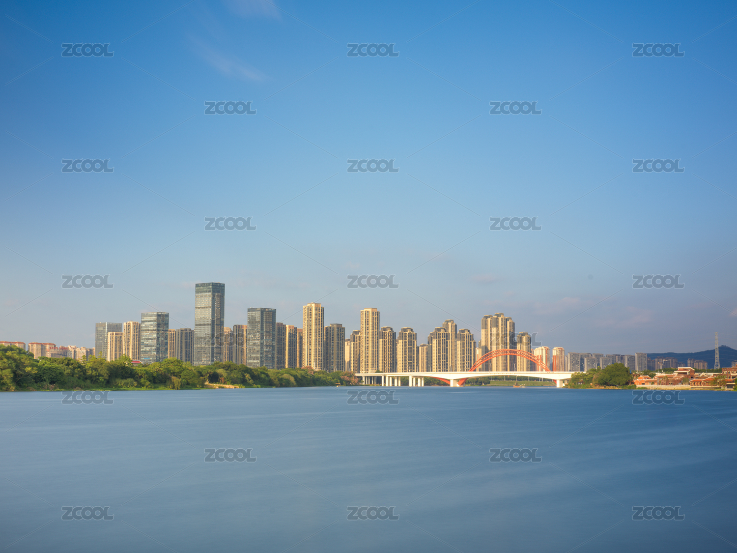 湖南长沙梅溪湖公园的湖岸楼盘
