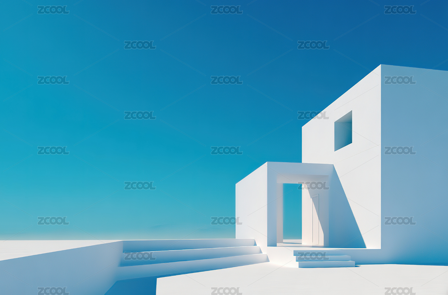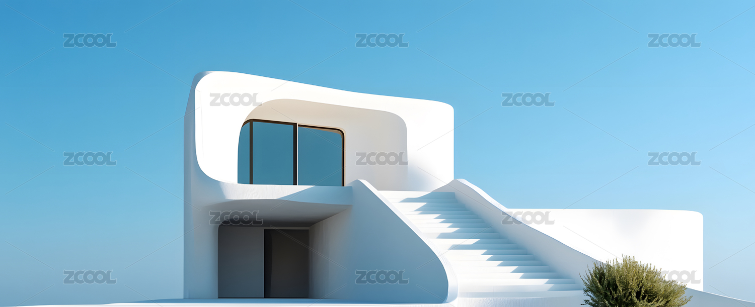 蓝天下白色墙面搭配黄色点缀的简约现代别墅