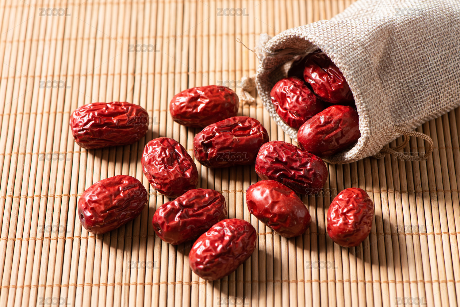 竹简背景上的红枣干枣