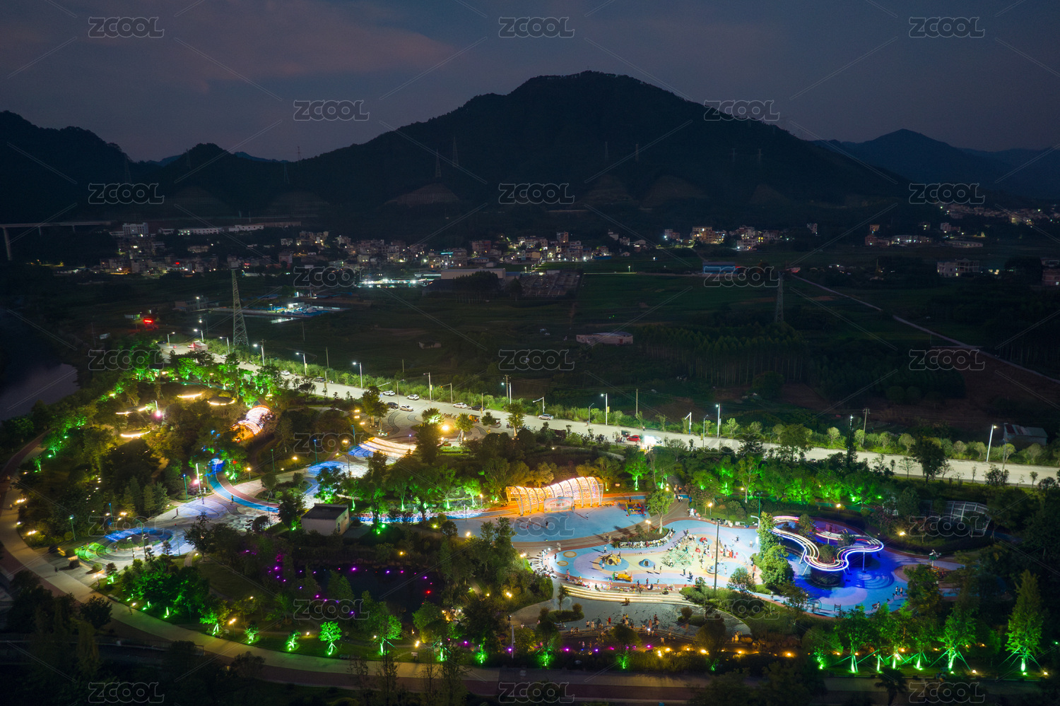 广西蒙山县蚕茧丝绸主题公园夜景