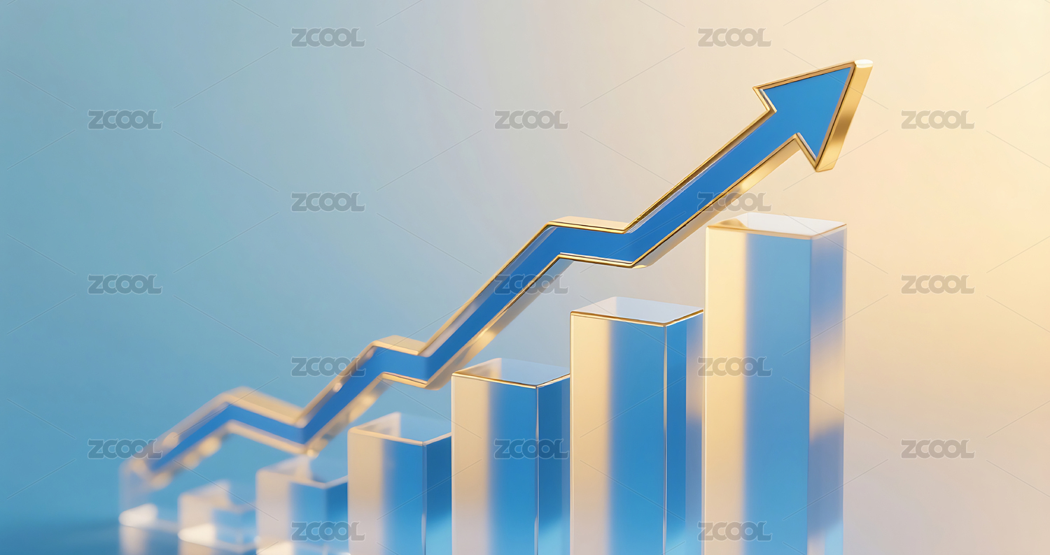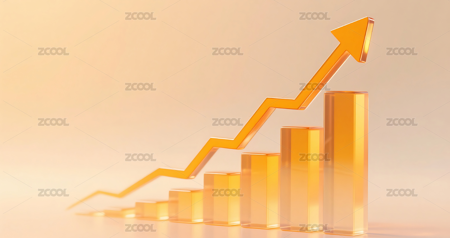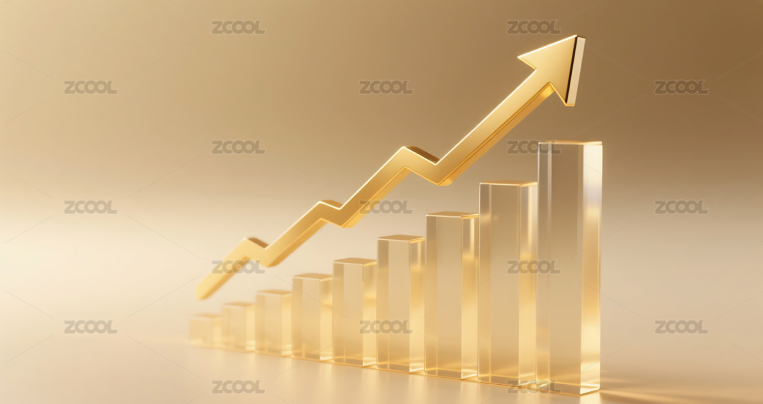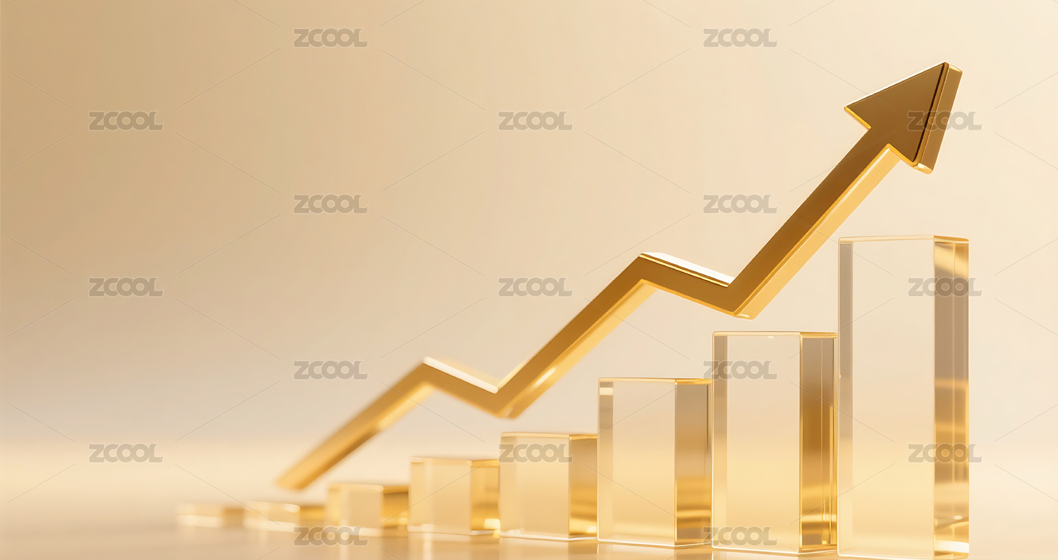 金色渐变玻璃质感金融柱状图增长箭头背景